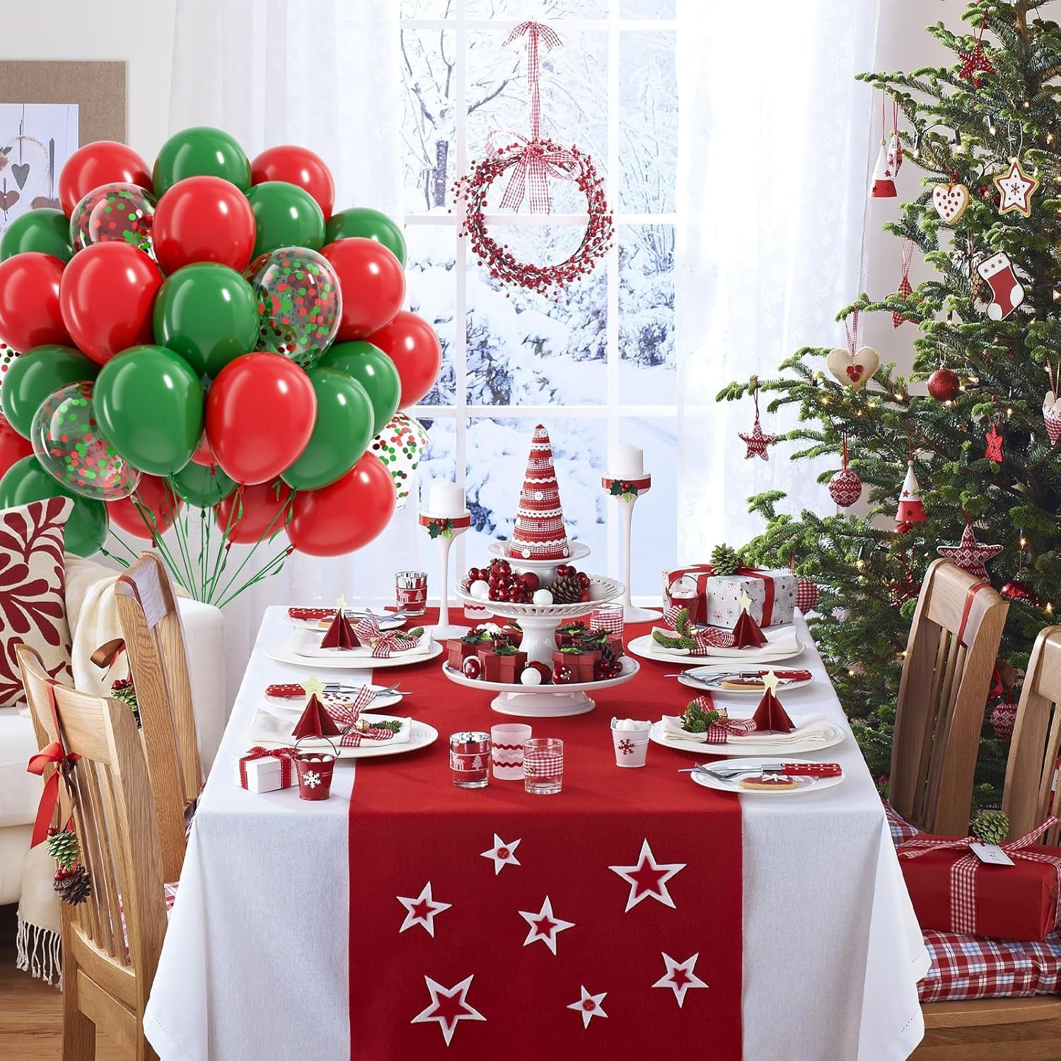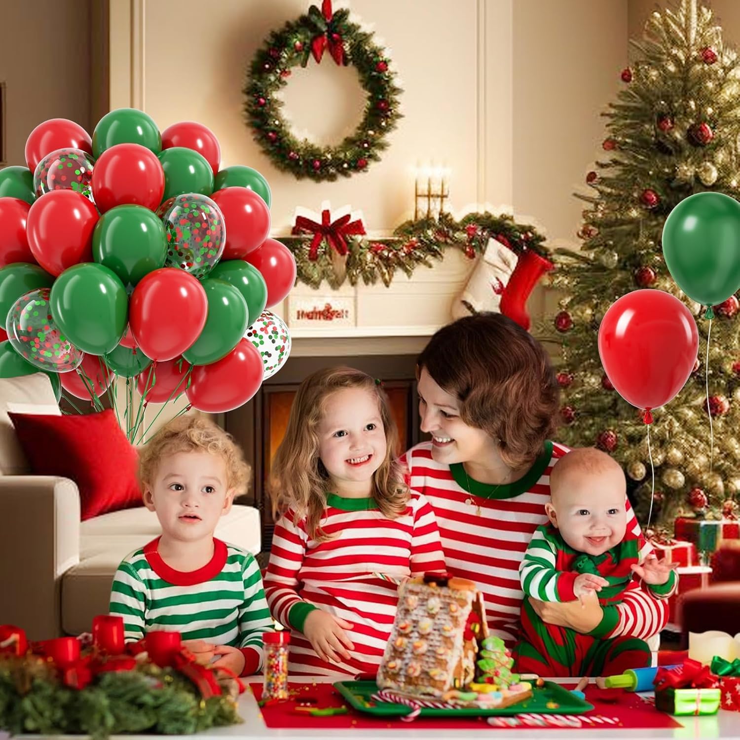 61pcs Green and Red Latex Balloons, 12-inch Confetti Balloons for Christmas & Birthday