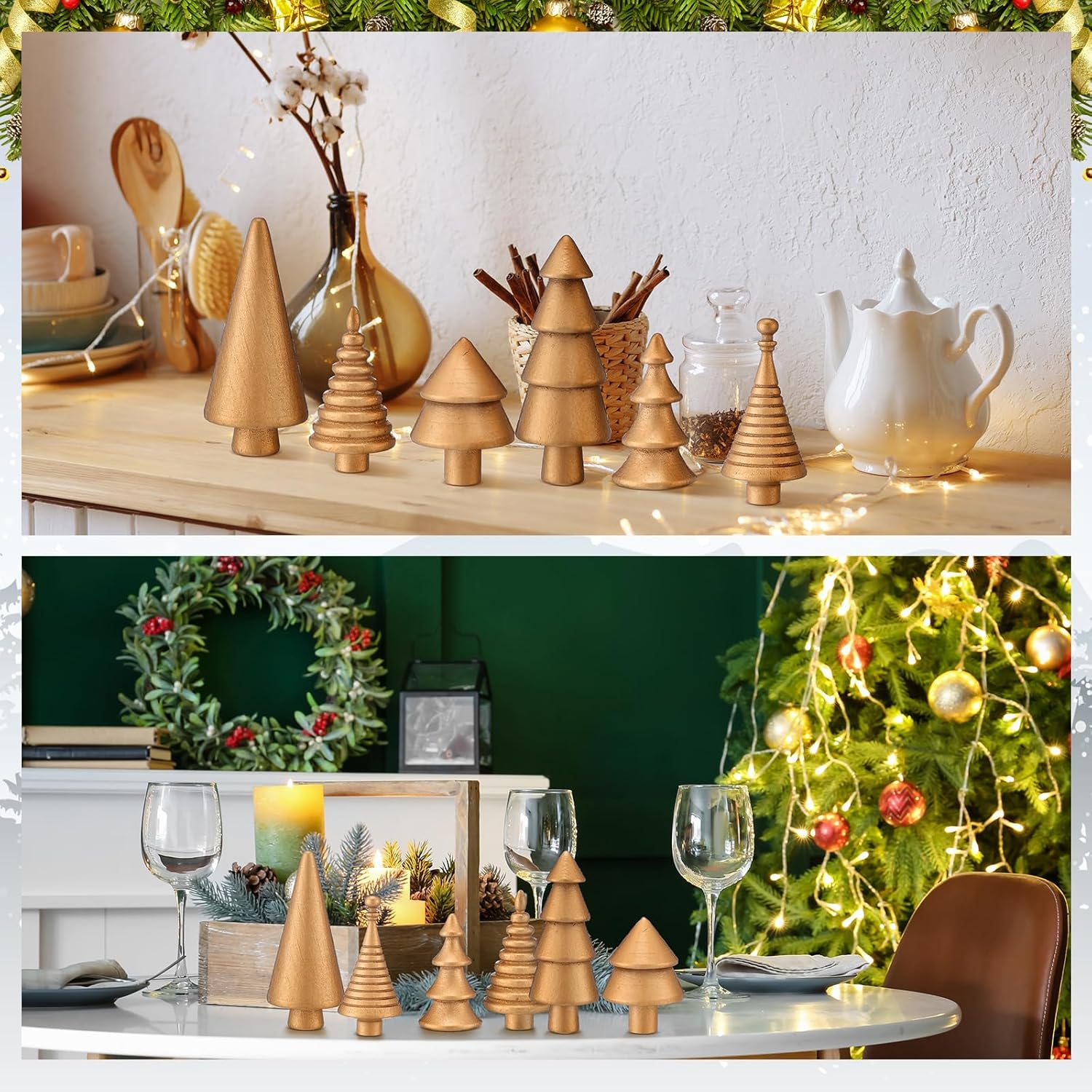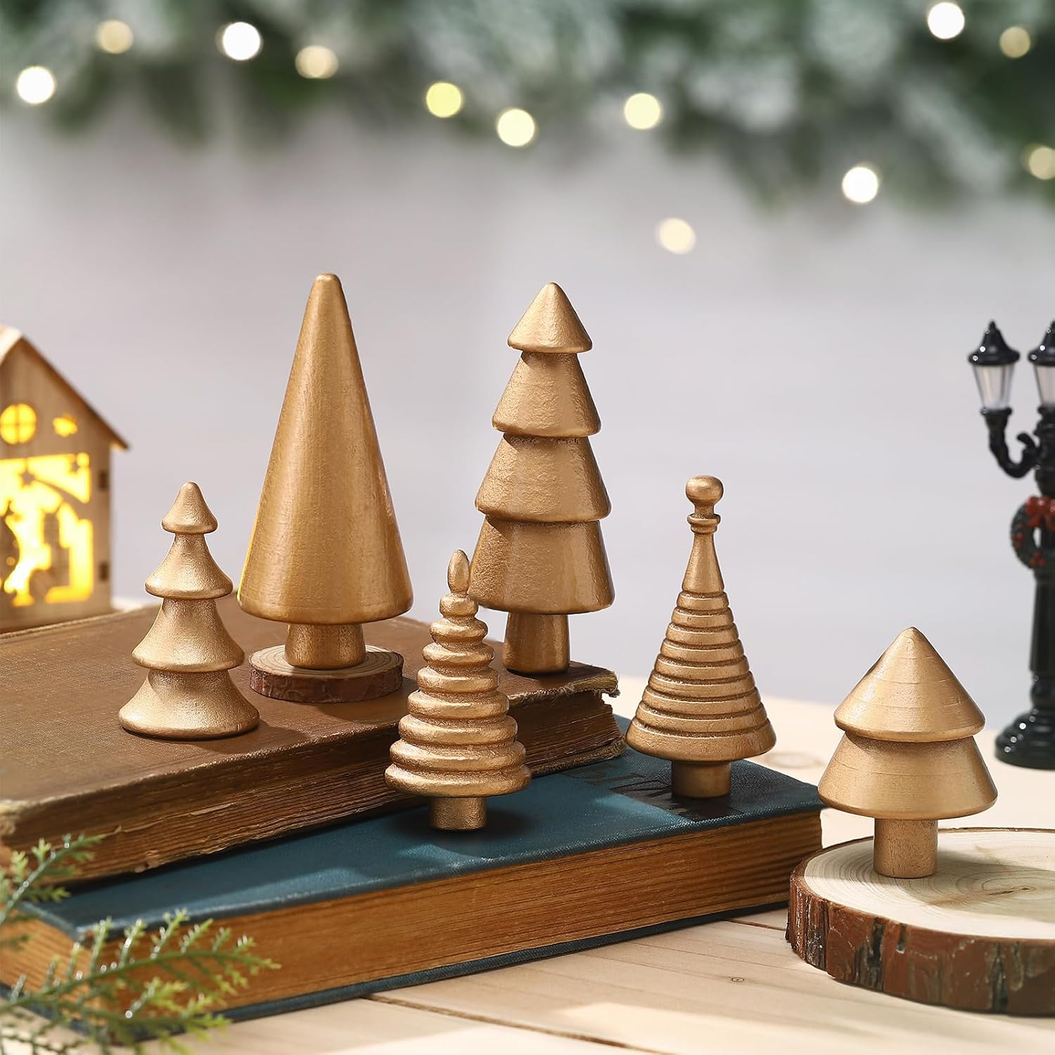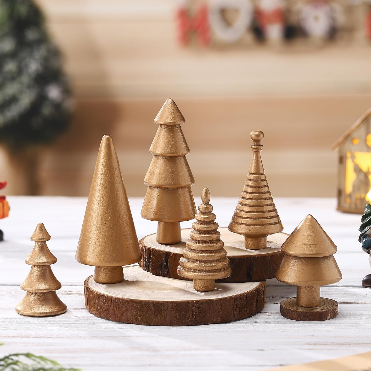 6PCS Mini Wooden Christmas Trees Gold Rustic Tabletop DIY Craft Decor