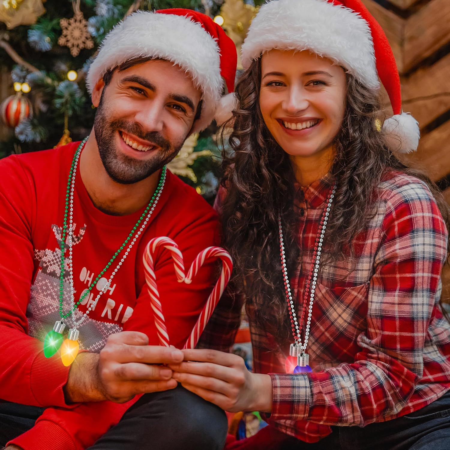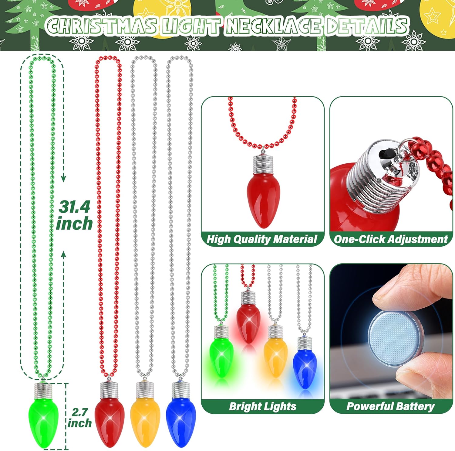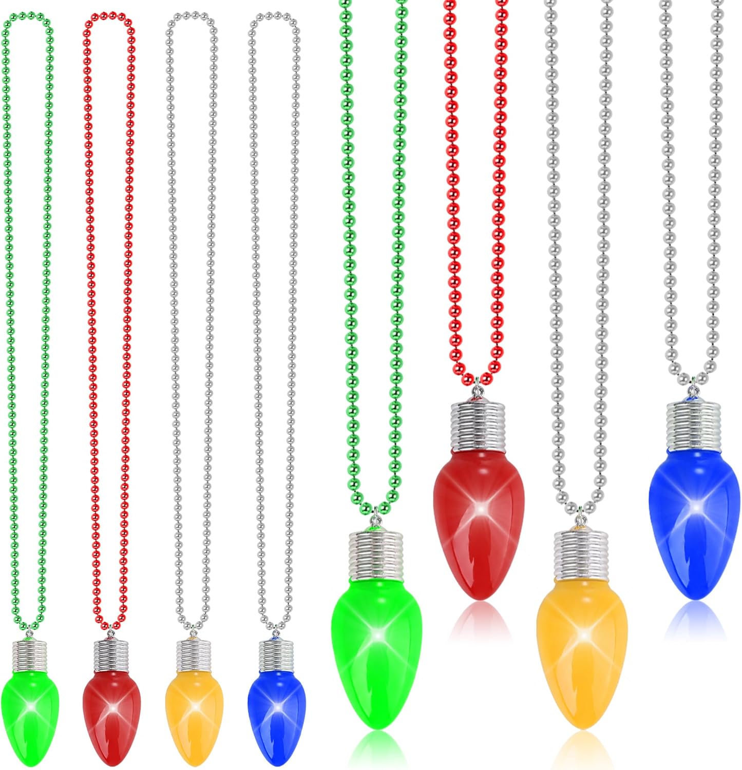 8 PCS Christmas Light-Up Bulb Necklaces Xmas Party Accessories Bulk