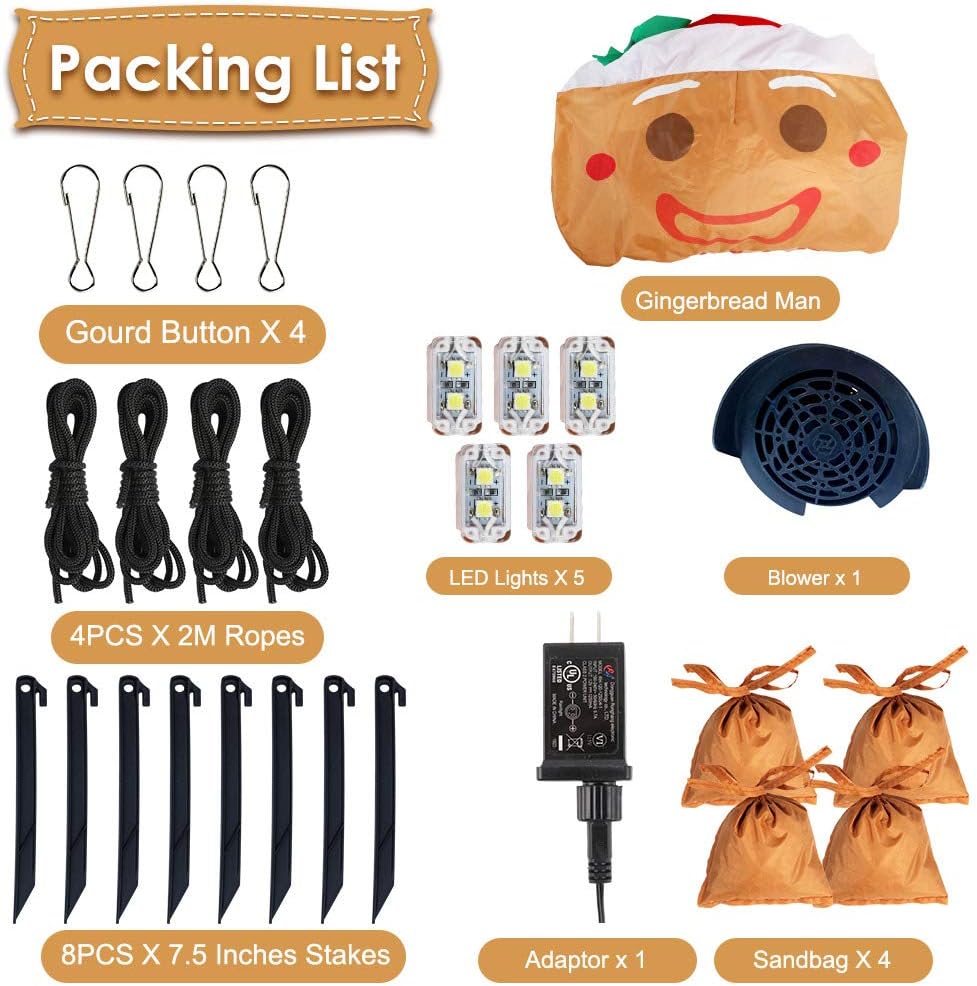 Make your yard the highlight of the holiday season with this 8-foot tall upgraded Gingerbread inflatable decoration. Designed for stability and ease, it includes 8 stakes, 4 fastened ropes, and 4 built-in sandbags to keep it securely anchored—no worries about wind damage. Equipped with a powerful built-in self-inflating blower, the gingerbread man inflates fully within a minute for quick, hassle-free setup. Crafted from durable, weather-resistant Oxford cloth, this inflatable withstands various weather conditions and retains its vibrant colors year after year, making it perfect for outdoor Christmas display