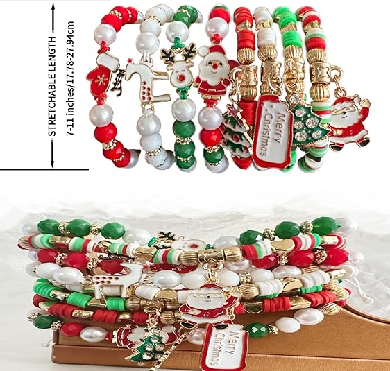 - 8 Festive Bracelets: Includes 8 Christmas-themed bracelets in classic red, green, and white colors.