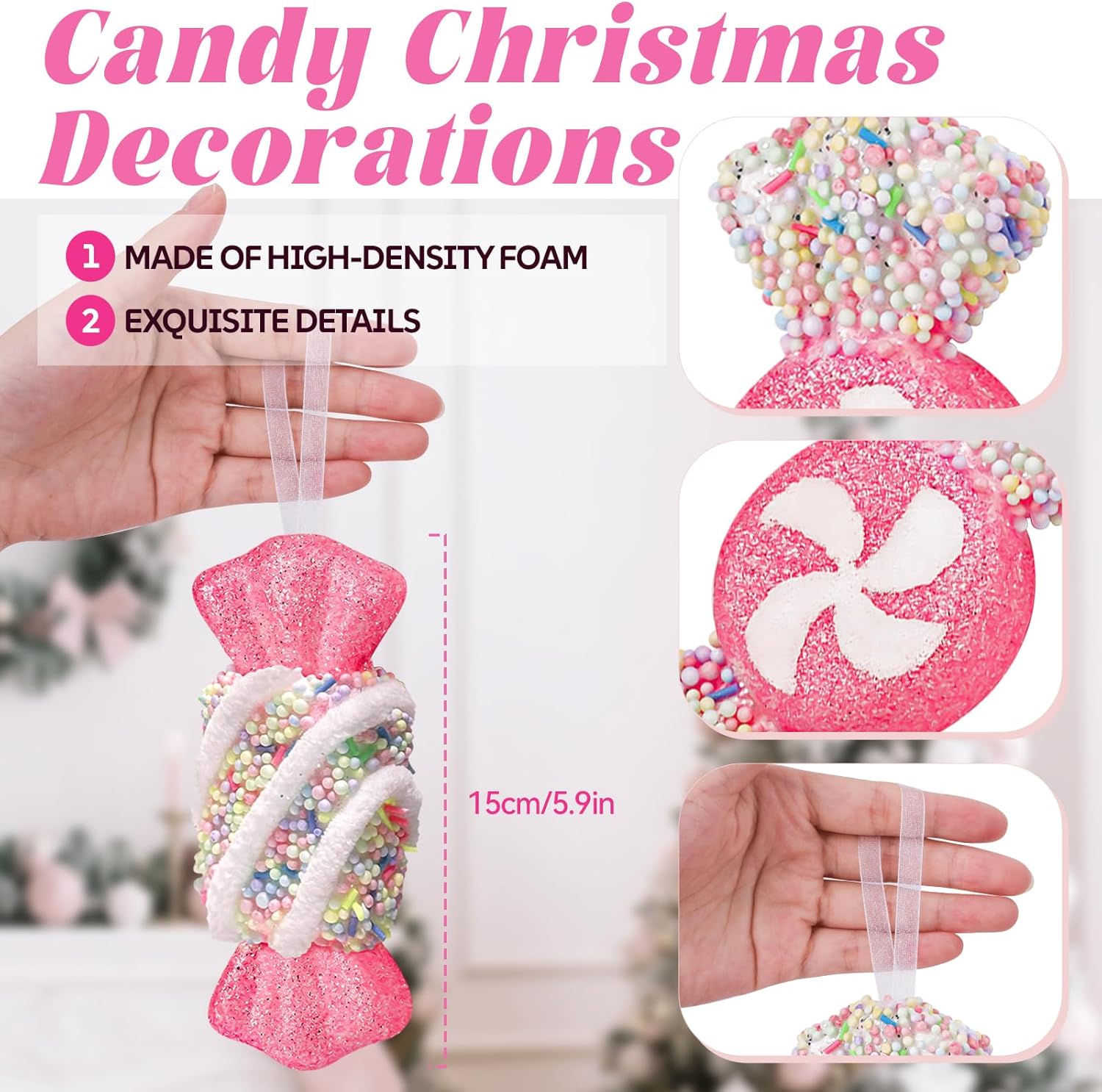 Add a playful and festive touch to your Christmas décor with this set of 8 pastel candy ornaments. Handcrafted with... Read more