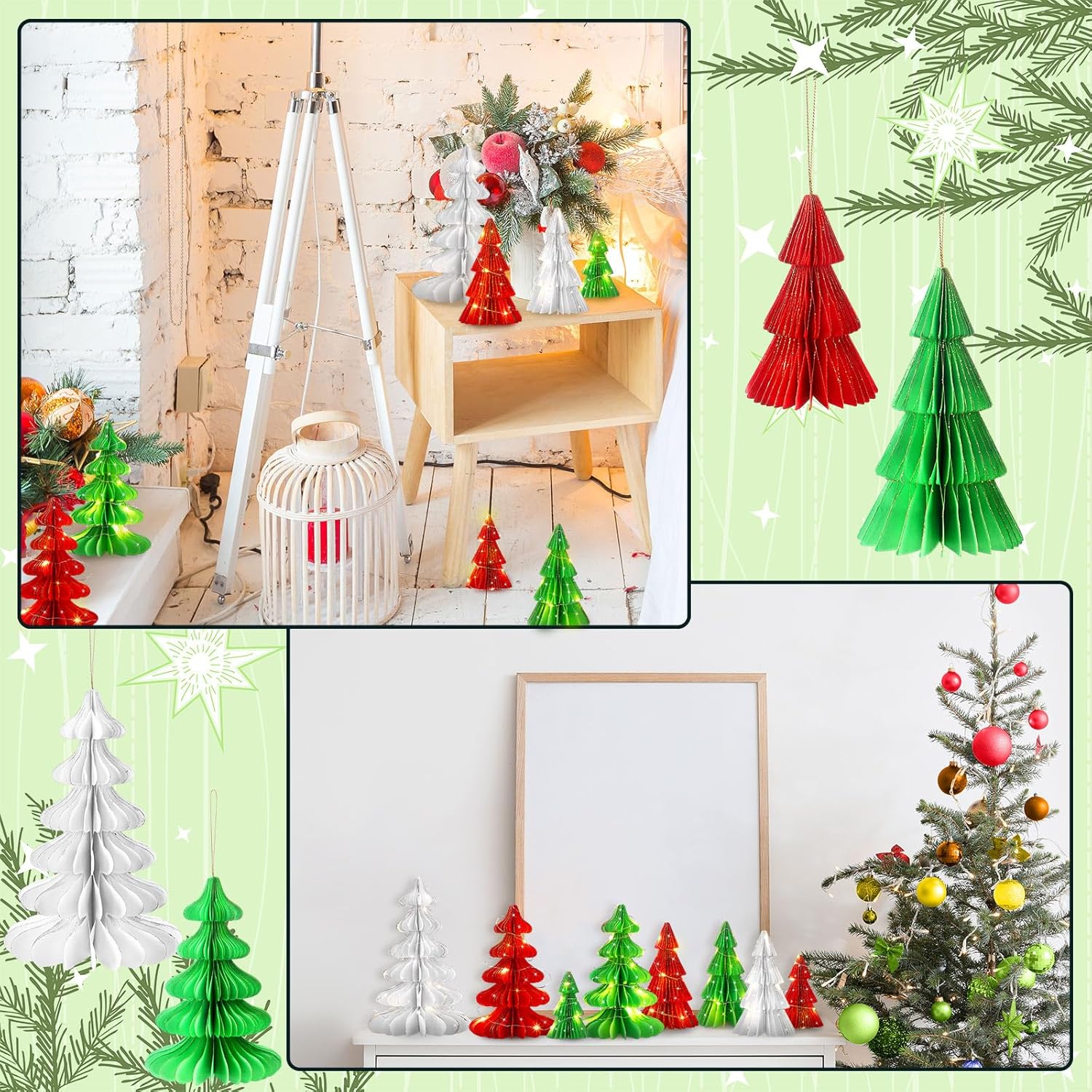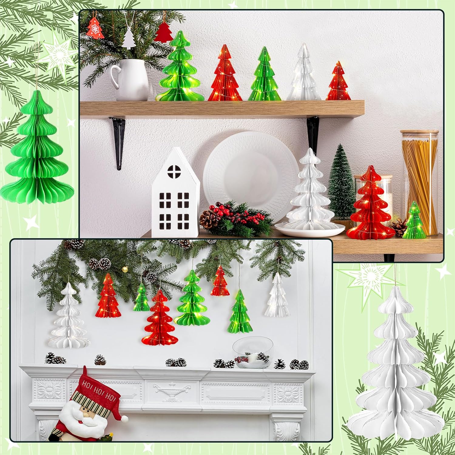 8PCS Honeycomb Paper Christmas Trees with LED Light Strings Table Decor