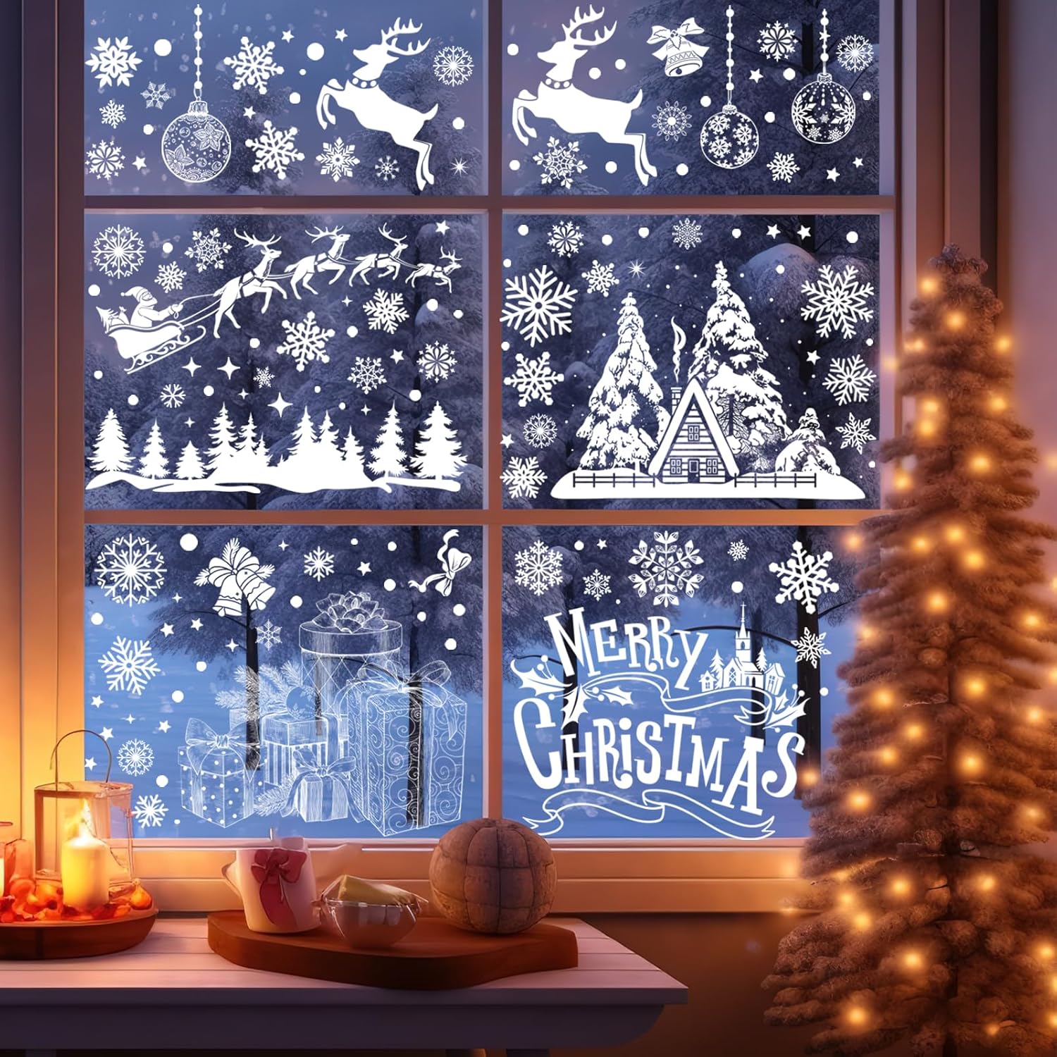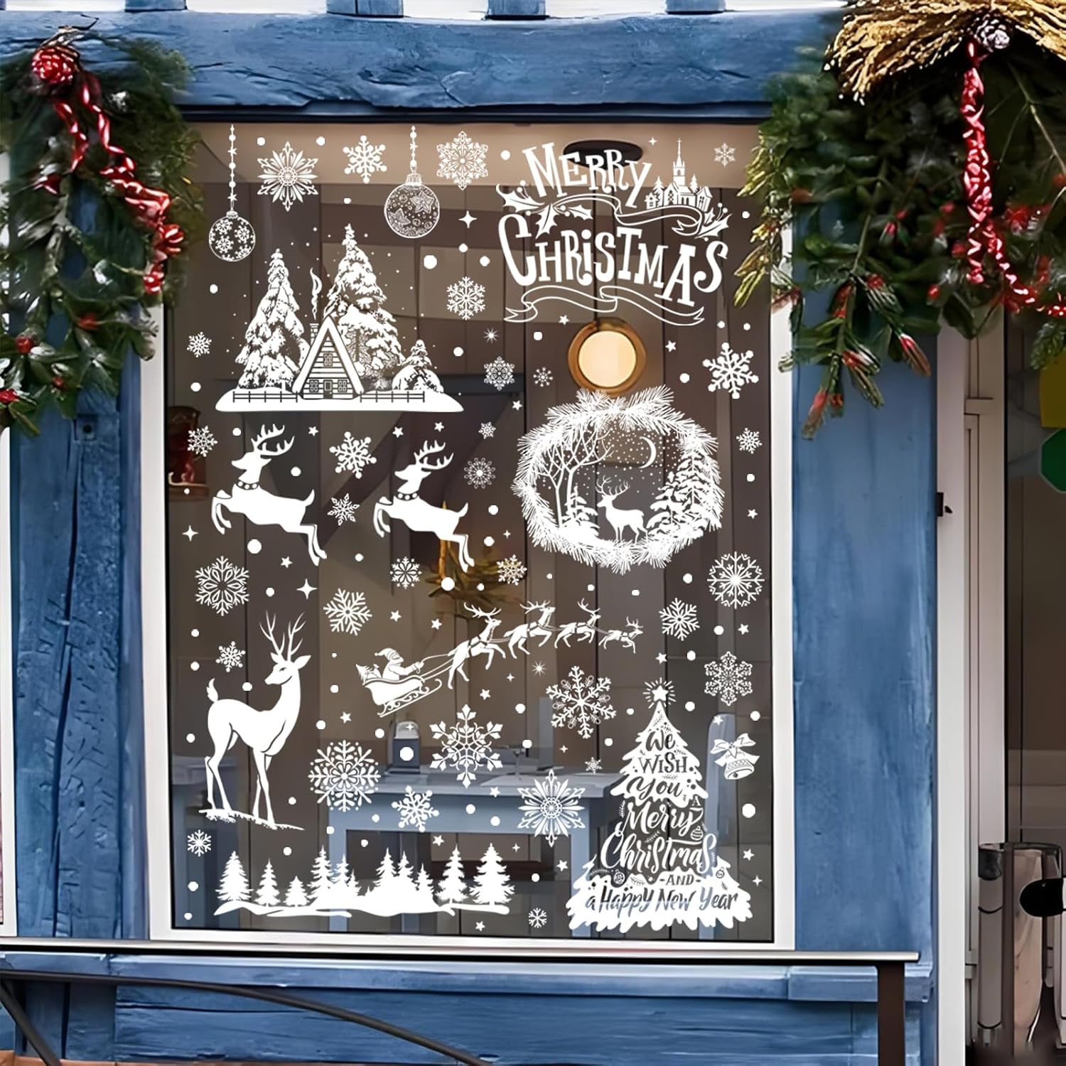 Add festive cheer to your windows with these Christmas Window Stickers! Designed with classic Christmas elements such as Christmas trees, snowflakes, reindeer, Santa Claus, and Christmas wreaths, these white decals bring a touch of holiday magic to any space. The stickers also feature warm holiday greetings like “Merry Christmas”, creating a joyful atmosphere for your home during the winter season. With their double-sided design, these decals are perfect for both indoor and outdoor window displays, ensuring everyone can enjoy the holiday spirit from any angle!