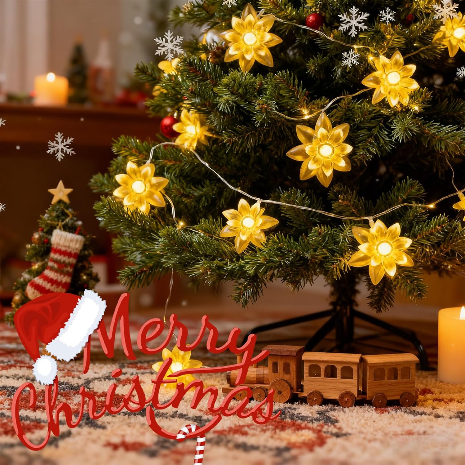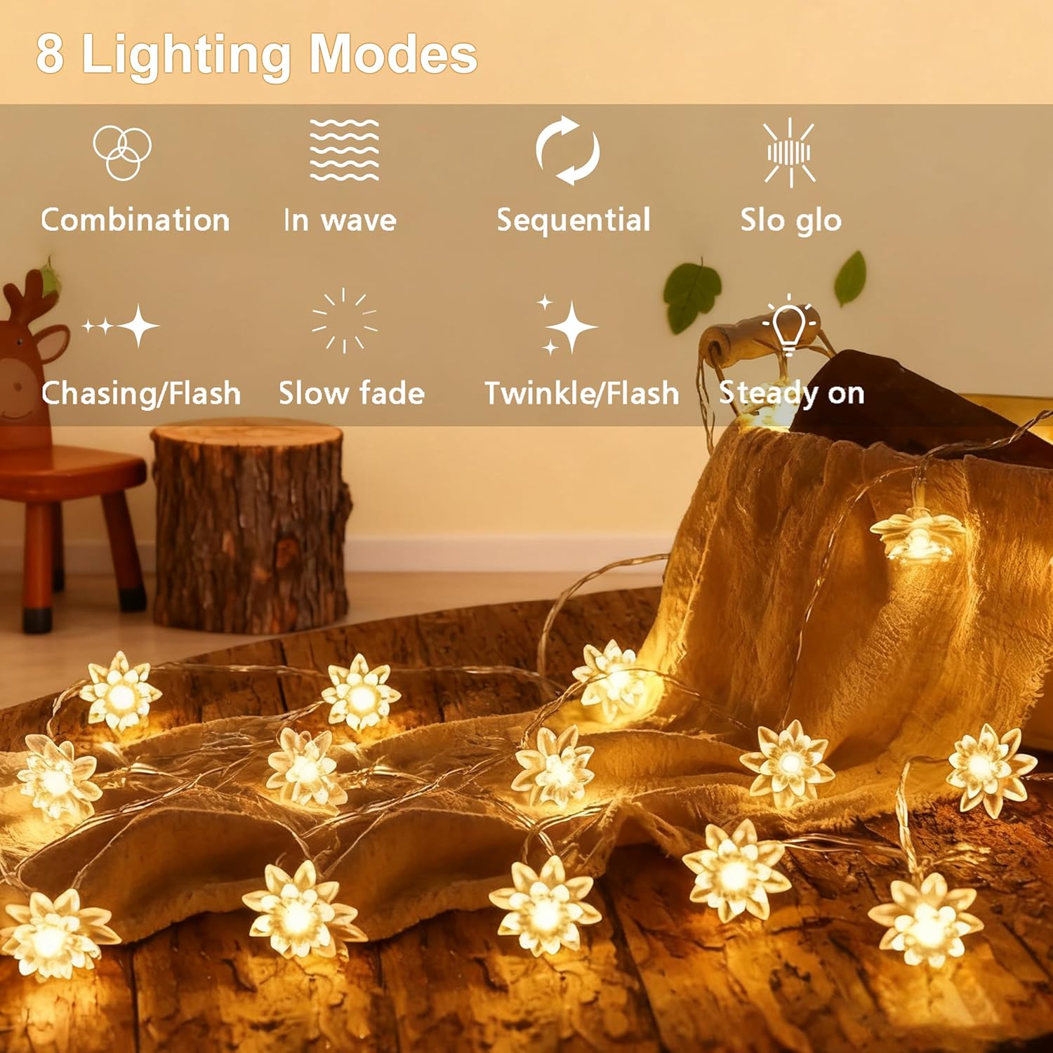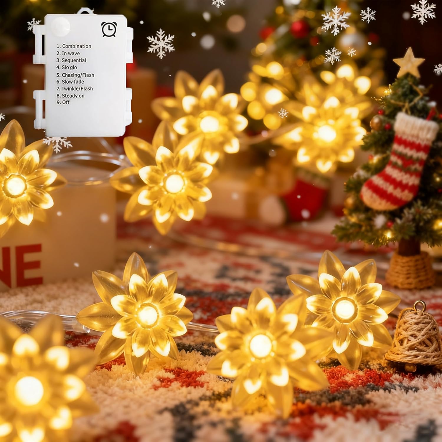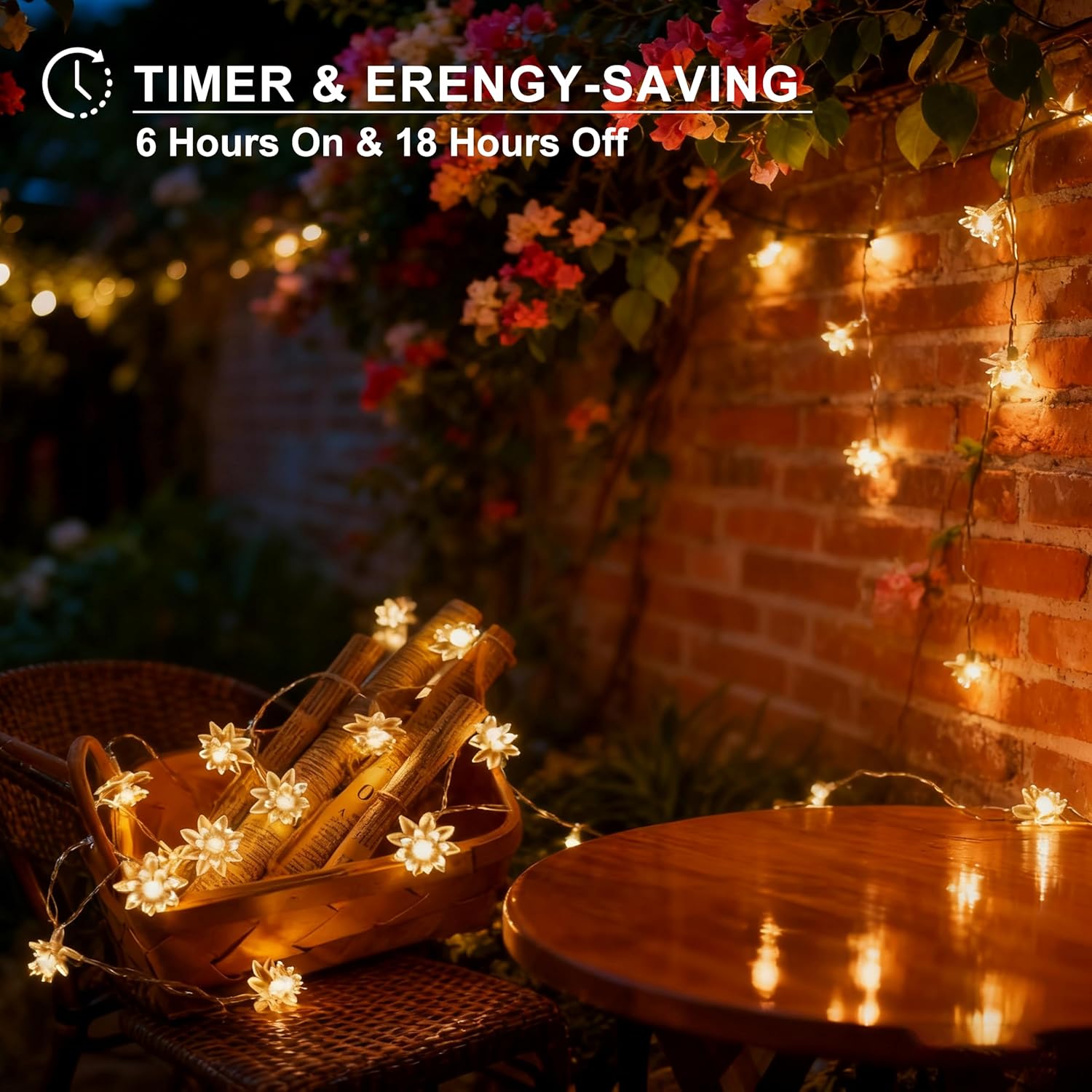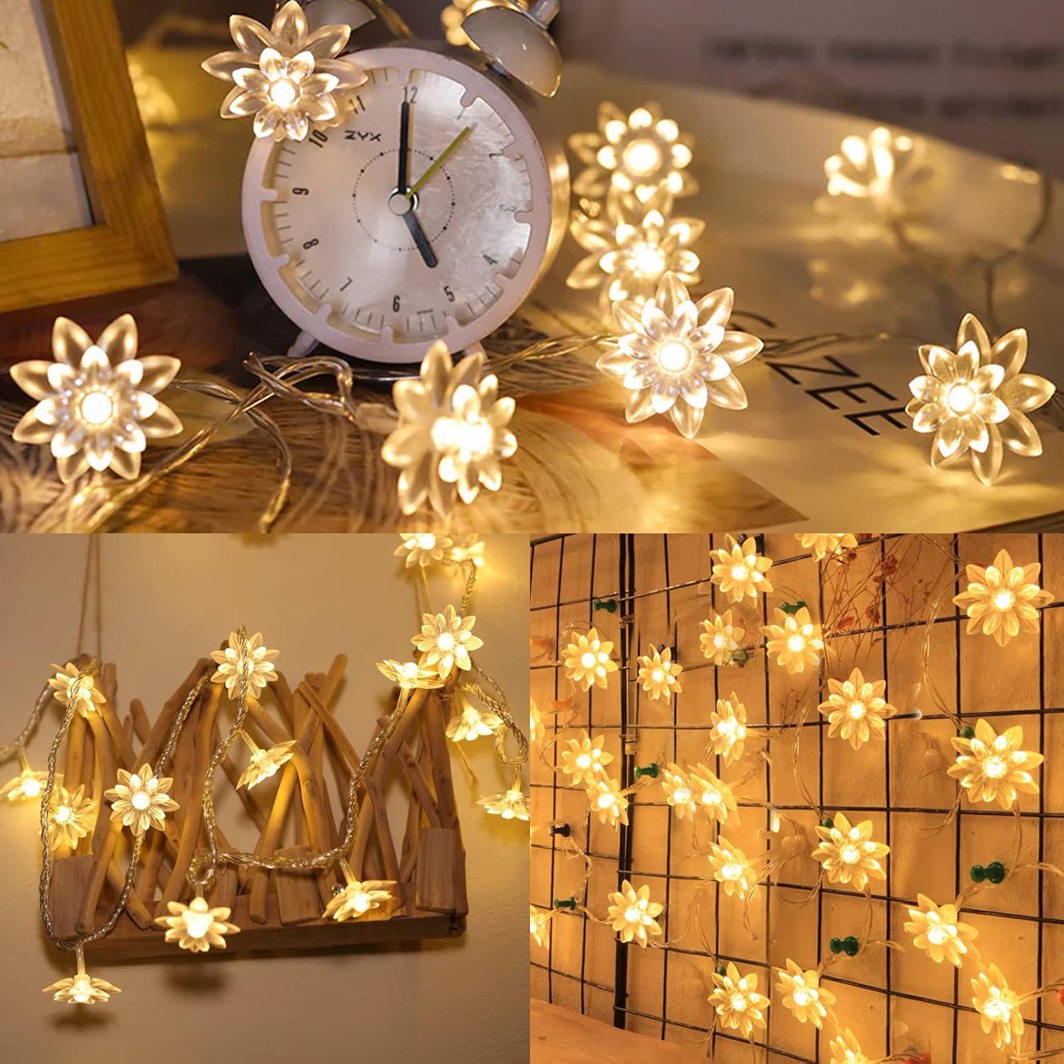Battery Operated Flower String Lights 158" 40LED Lotus Fairy Lights Timer