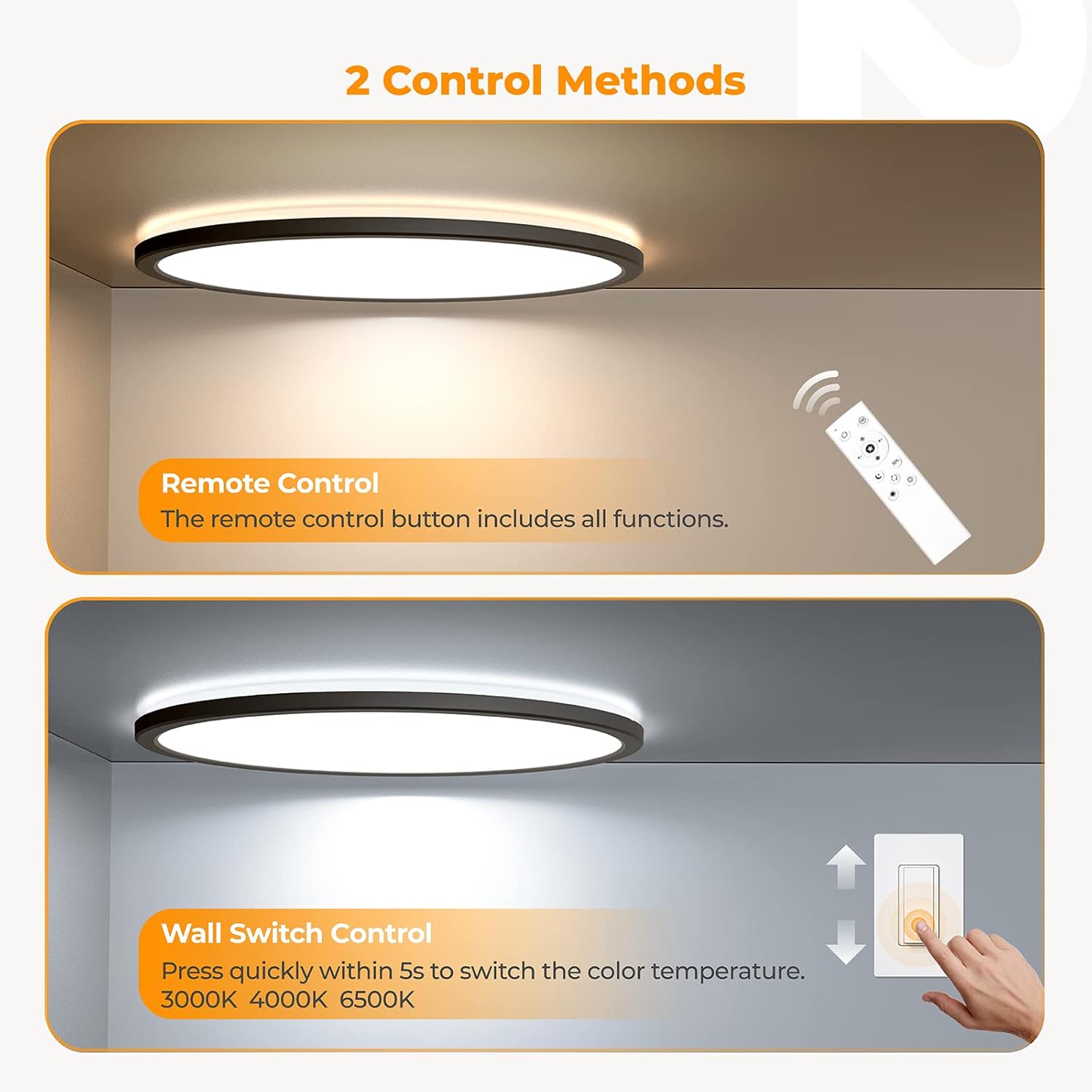 The BLNAN ceiling light offers versatile lighting with a convenient remote control that lets you change color temperatures anytime without the hassle of uninstalling the fixture. Unlike traditional hardwired flush ceiling lights where the color temperature must be set before installation, this light provides three adjustable options—from warm 3000K to cool 6500K—to suit various moods and activities. Whether you need bright, cool light for work or soft, warm light for relaxation, this single LED flush mount ceiling light adapts seamlessly to different rooms and needs.
