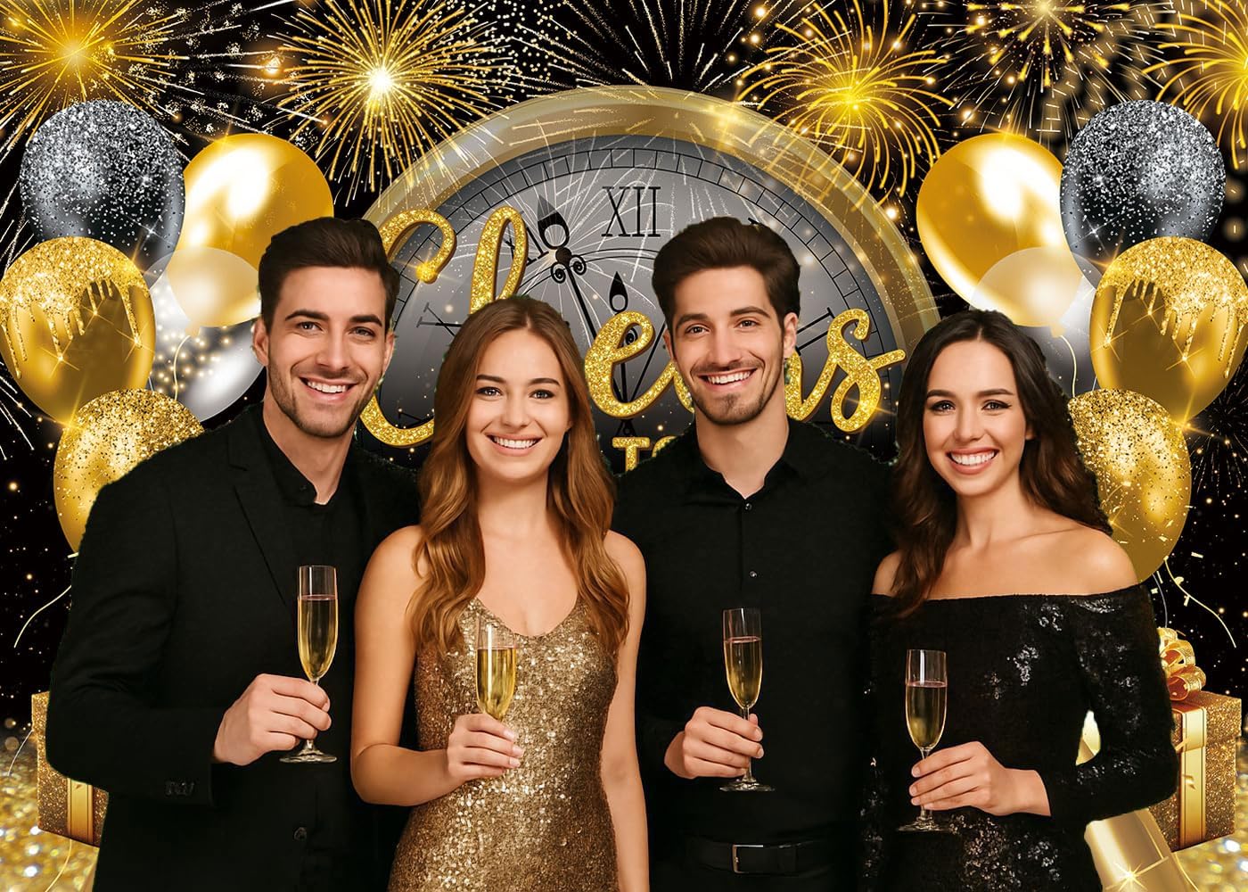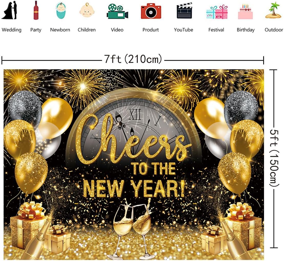 Cheers to the New Year 7x5FT Banner Photo Background NYE 2026 Party Supplies