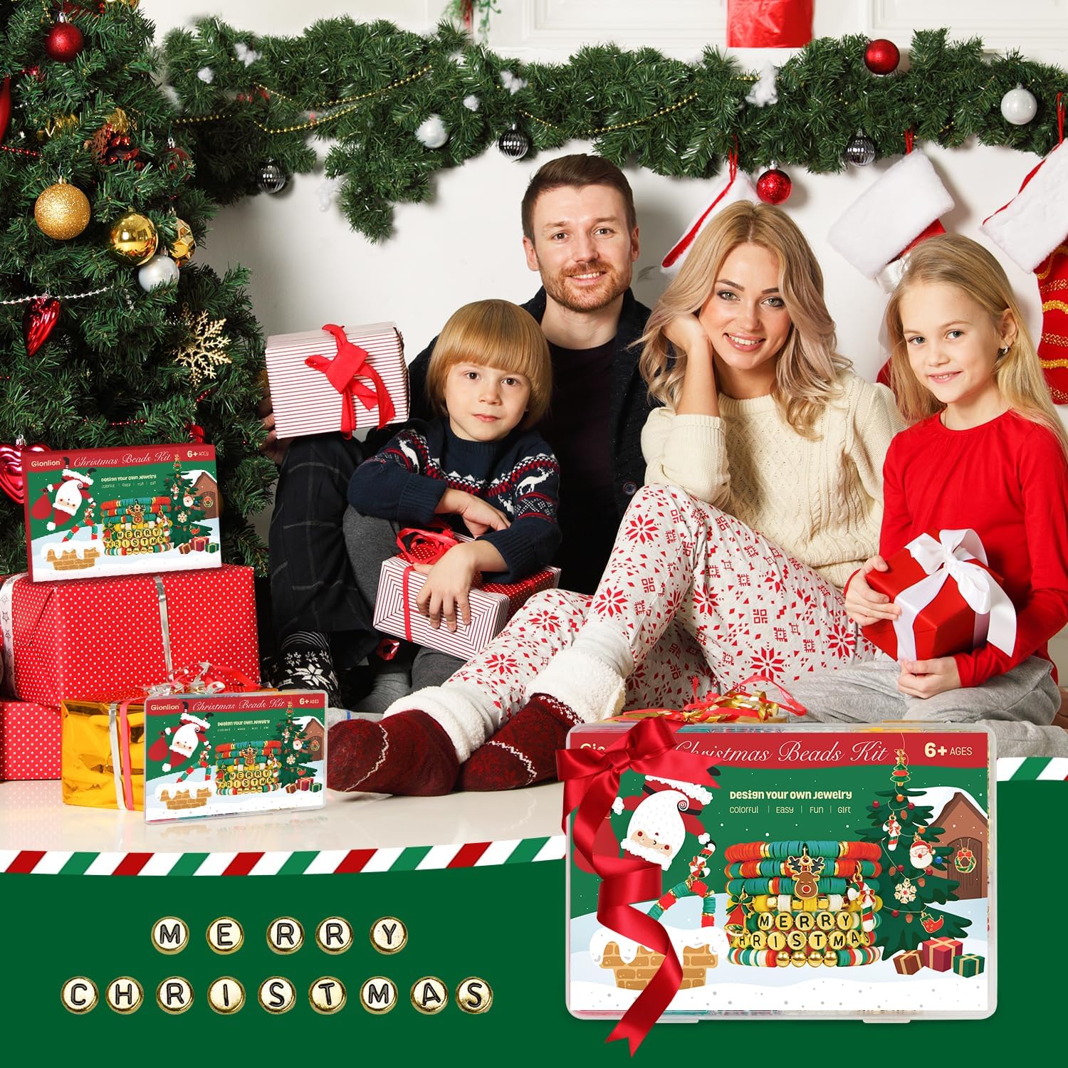 Christmas Clay Beads for Bracelets DIY Jewelry Making Kit Golden Beads Crafts