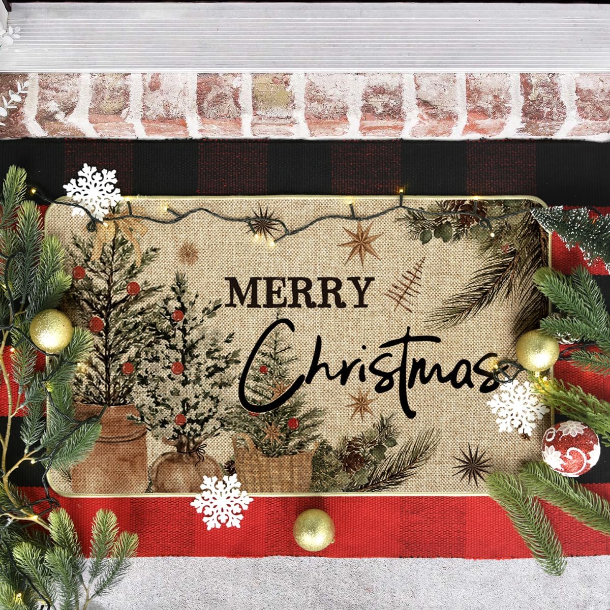 Welcome your guests with a unique and seasonal doormat designed to add warmth and style to any entryway. Perfect for use on decks, patios, porches, verandas, or front doors, this durable doormat offers a friendly greeting to everyone who visits your home. It features a low-profile design measuring 17" x 29" with a slim 0.25" thickness, making it an ideal fit for most entryways without creating a tripping hazard. Constructed with high-quality polyester felt on top and a non-slip recycled rubber backing, it ensures safety and durability while being stain-resistant for easy maintenance.