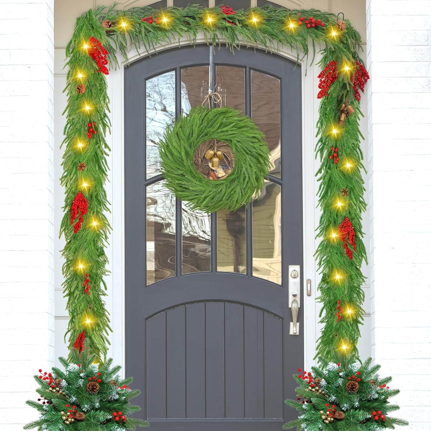 - Pre-Decorated Accents: Includes lifelike red berries, bells, and pine cones securely attached for a cohesive, time-saving look.