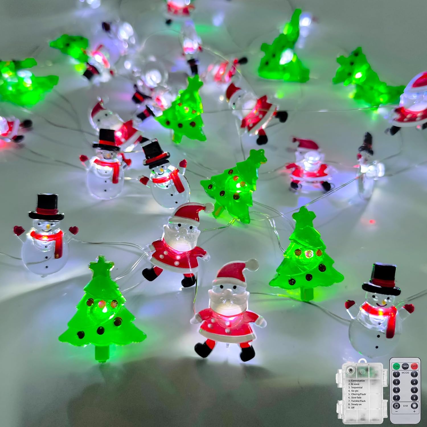 - Festive Designs: Includes 50 LED lights in the shapes of Christmas trees, Santa Claus, and snowmen for a fun and cheerful holiday vibe.