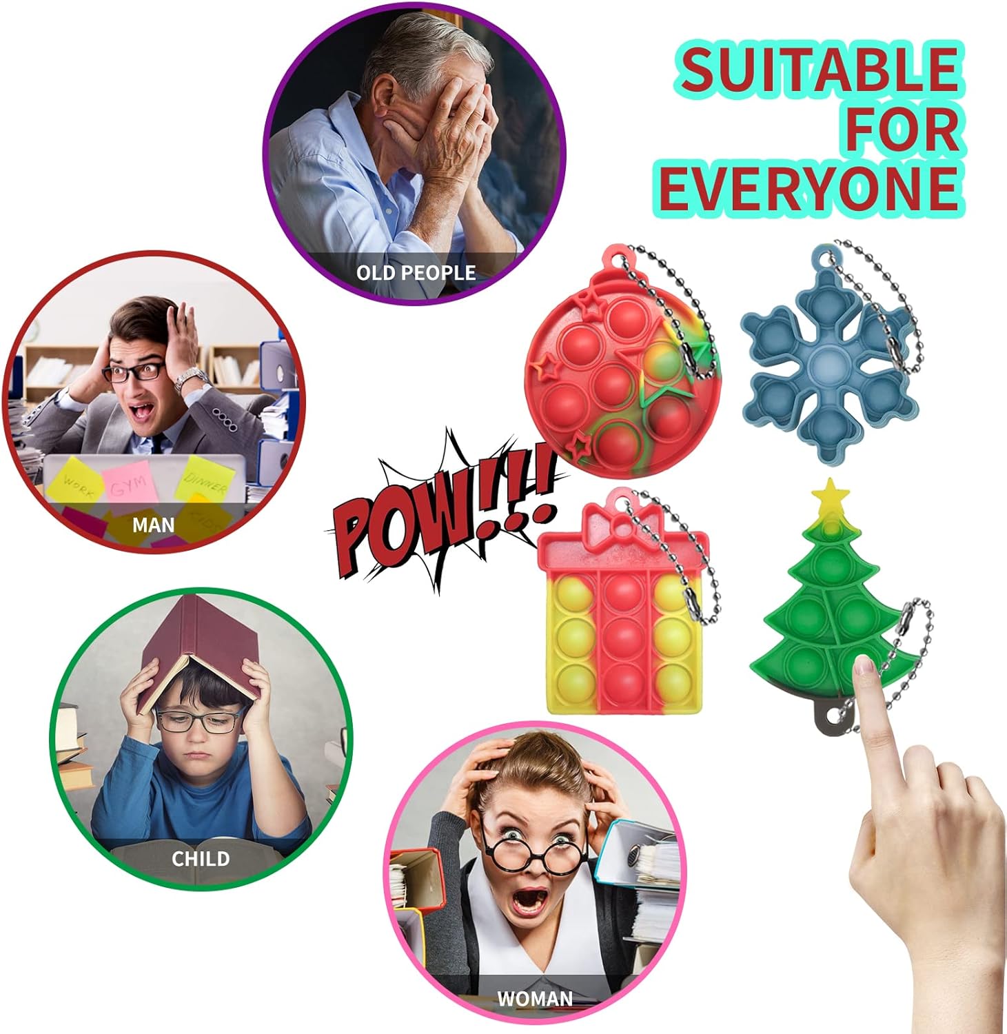 - Set Includes: Multiple mini Christmas-themed pop fidget toys (designs may vary, featuring elements like Santa, snowflakes, Christmas trees, etc.)