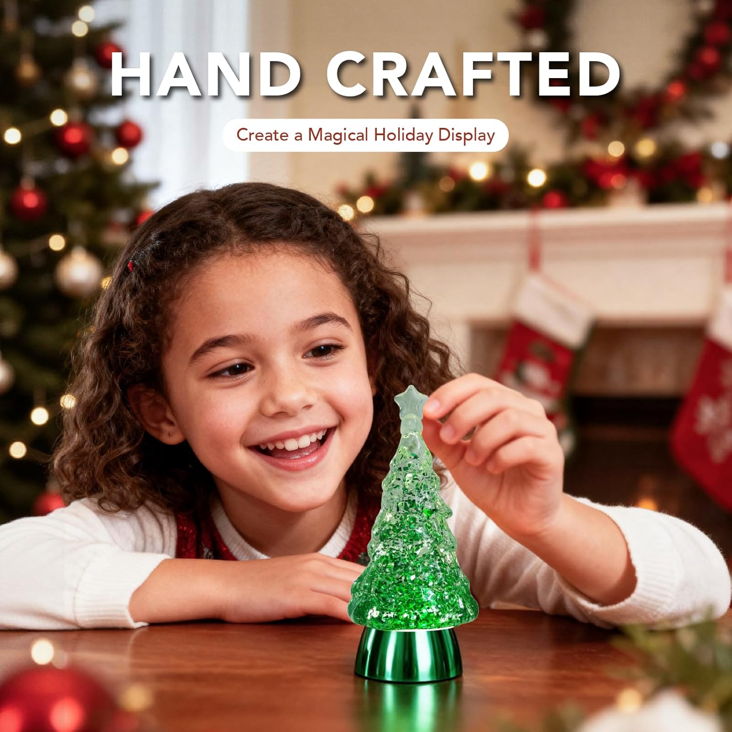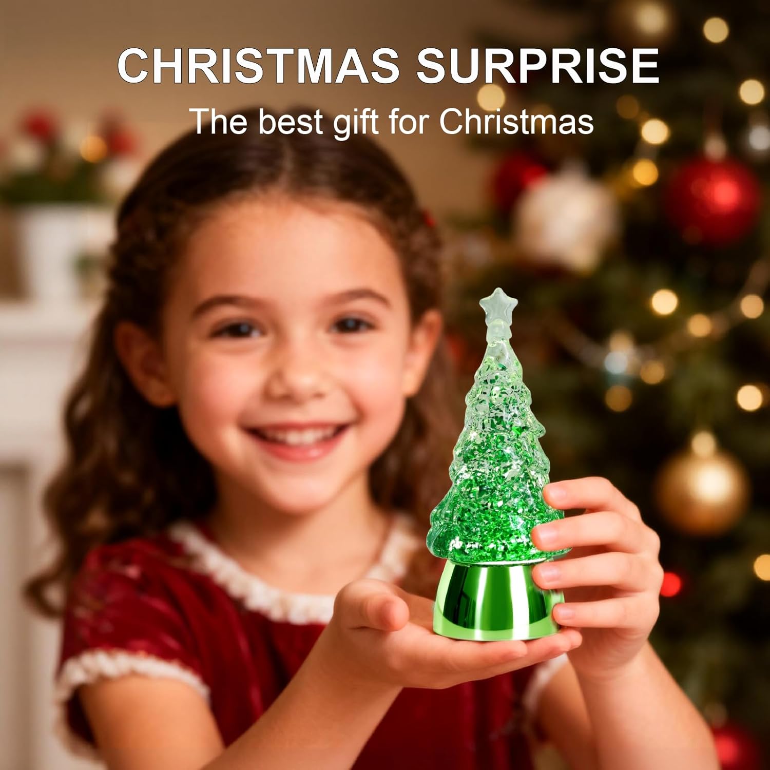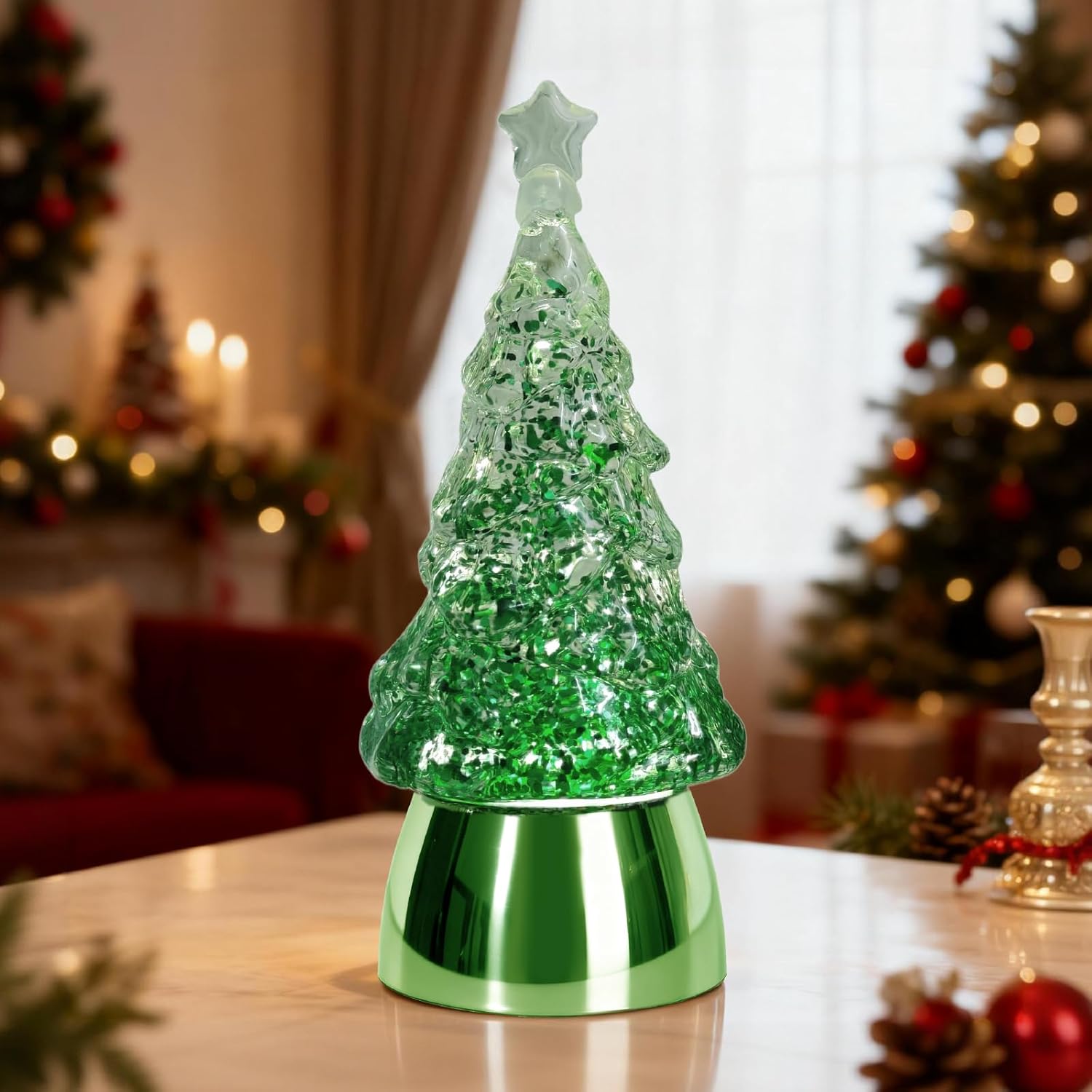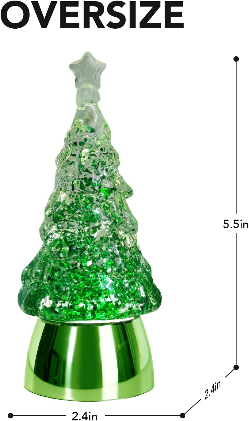 Christmas Mini Snow Globe Green Tree Lighted Water Lantern Xmas Decor Gift