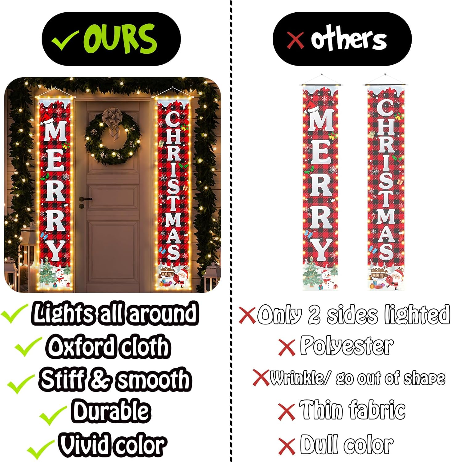 - Bright, vibrant Merry Christmas banner with built-in lights for stunning nighttime display