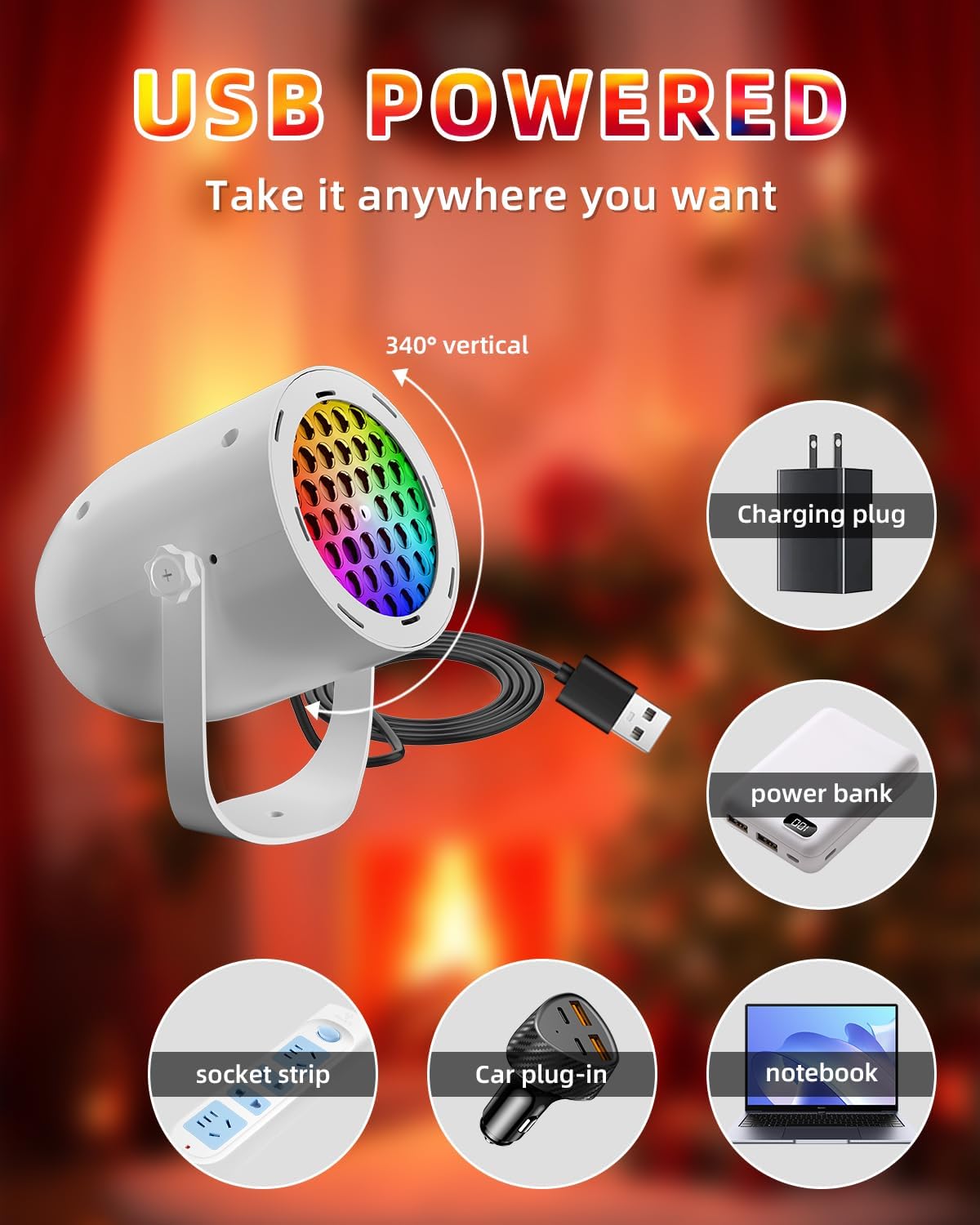 - Rotation: 360° adjustable projection angle