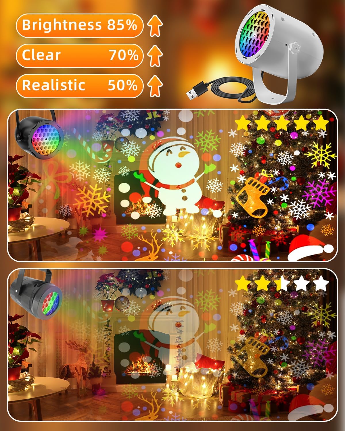 - High-brightness LED beads for sharp, vivid, and realistic projections