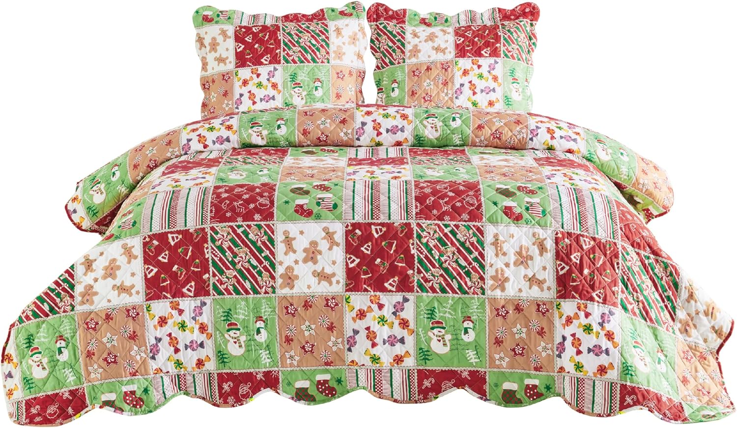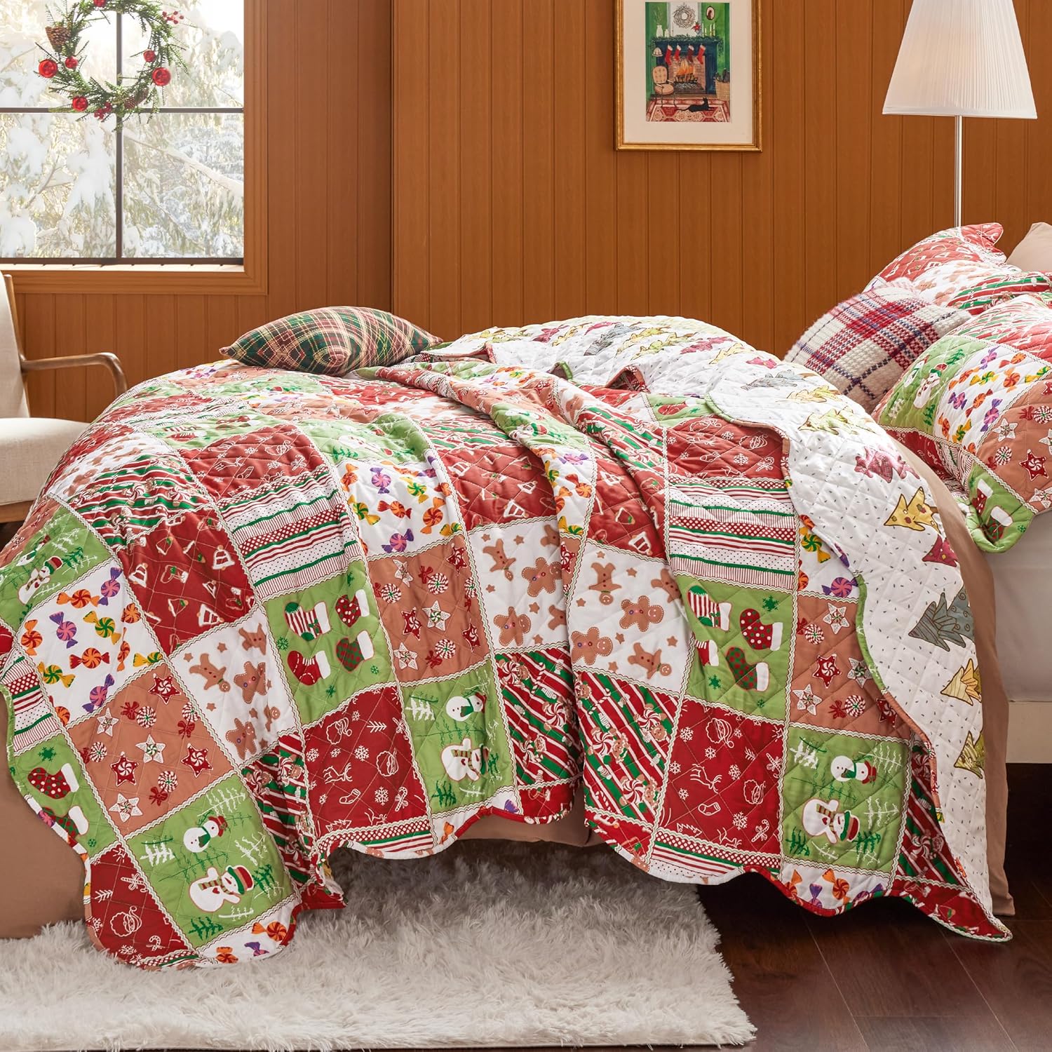 Bring festive cheer and warmth to your bedroom with the Bedsure Christmas Plaid Quilt Set. Featuring vibrant holiday-themed patterns with charming wave edges, this quilt set instantly brightens your sleeping space and creates a joyful seasonal atmosphere. The brushed microfiber fabric offers an ultra-soft, velvety feel that’s cozy and quiet—free from any crinkly noise. Thanks to a special disperse dye process, the colors remain vivid and fade-resistant wash after wash. Plus, the reversible design lets you switch between two distinct Christmas patterns, giving you versatile décor options to match your holiday mood or style.