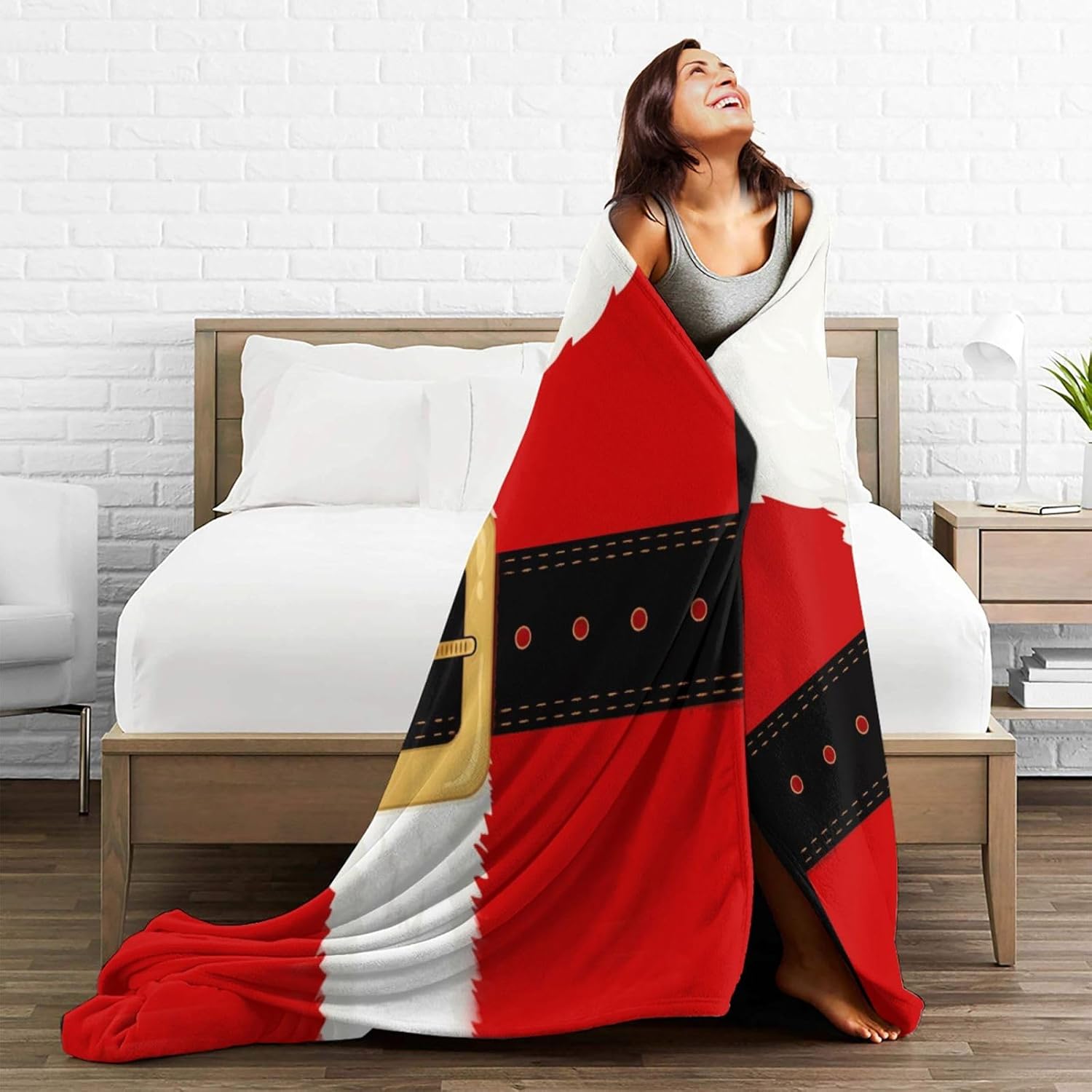 Designed with festive red and white colors featuring Santa’s iconic beard and suit, this blanket brings warmth and a joyful Christmas spirit to any room. Made from soft, lightweight flannel material, it’s perfect for snuggling up during chilly winter nights or adding a seasonal touch to your home décor. Easy to maintain and foldable for storage, this blanket is an essential and heartwarming addition to your holiday celebrations.