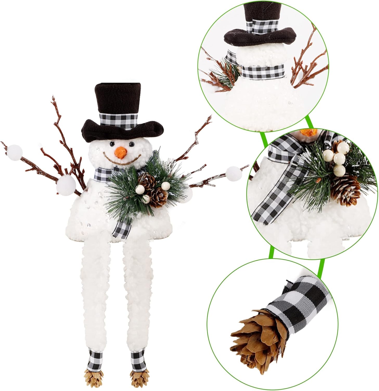 Add a charming touch to your winter décor with this pair of adorable handmade snowman shelf sitters. Crafted with exquisite handwork, their foam bodies and heads are covered in soft artificial lamb wool, giving them a fluffy, snow-like appearance. Featuring classic black and red checked hats and scarves, these snowmen bring warmth and personality to any shelf, mantel, or tabletop during the festive season.