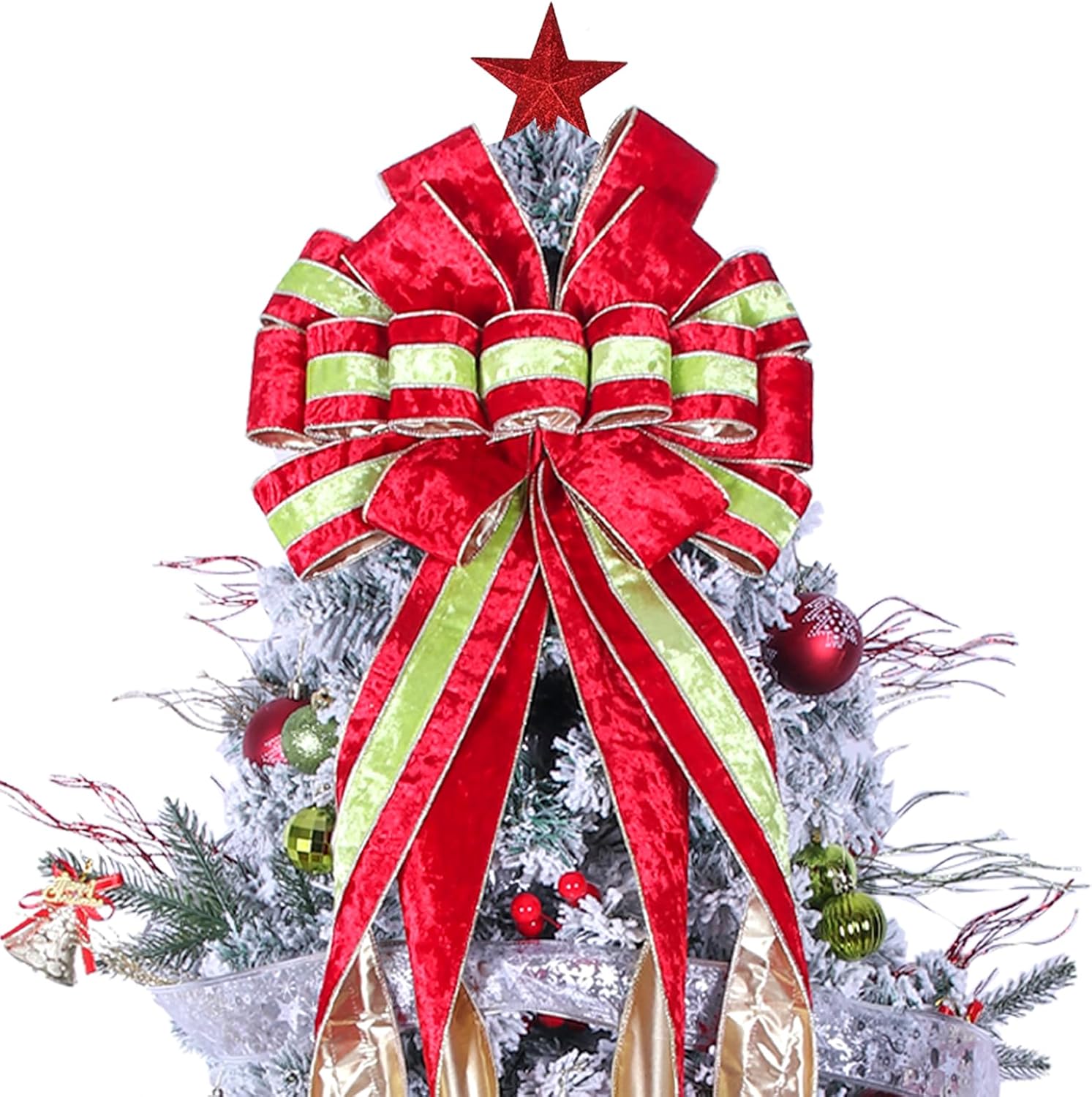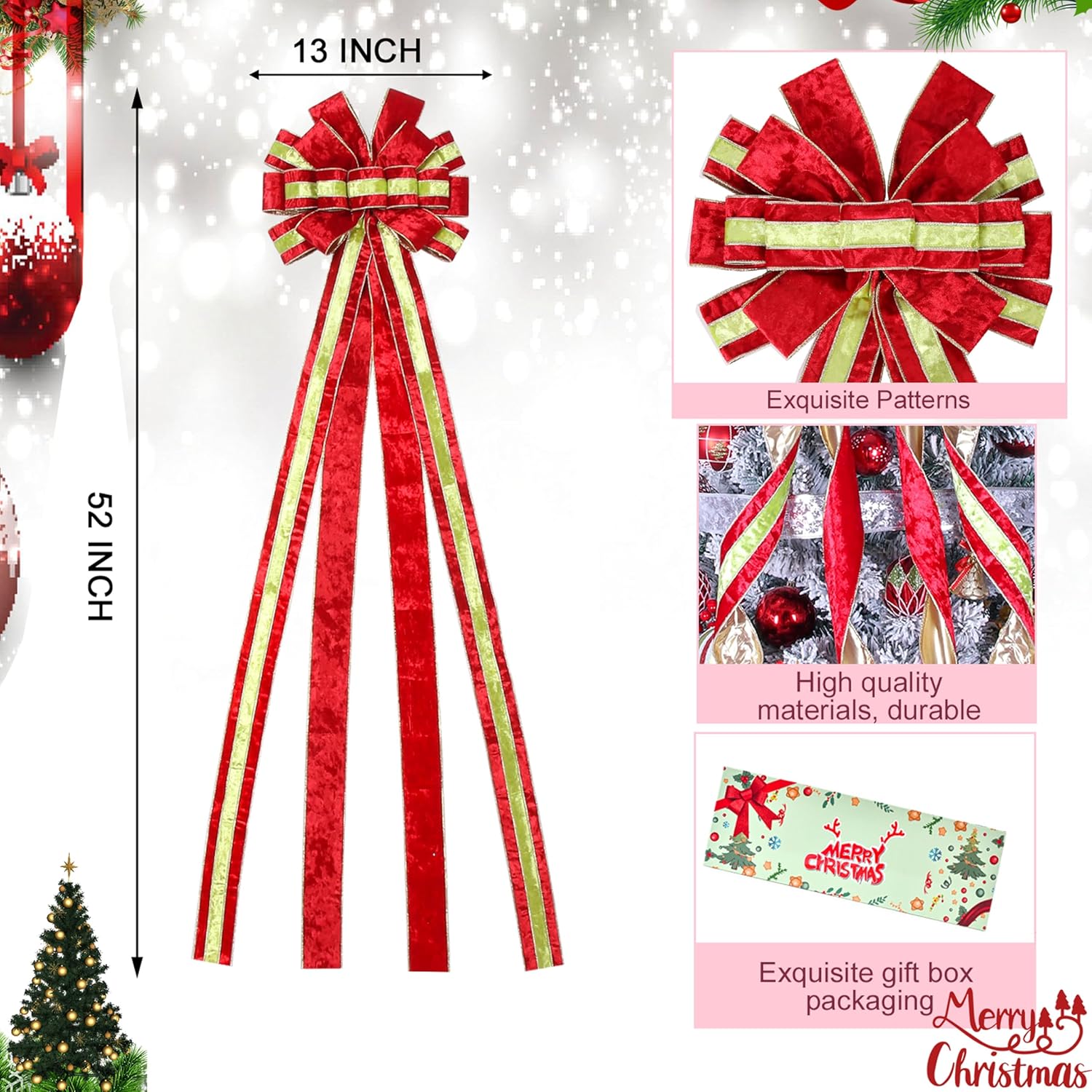 Christmas Tree Topper Wreath Bow Red Green Velvet 52"x13" Xmas Decor