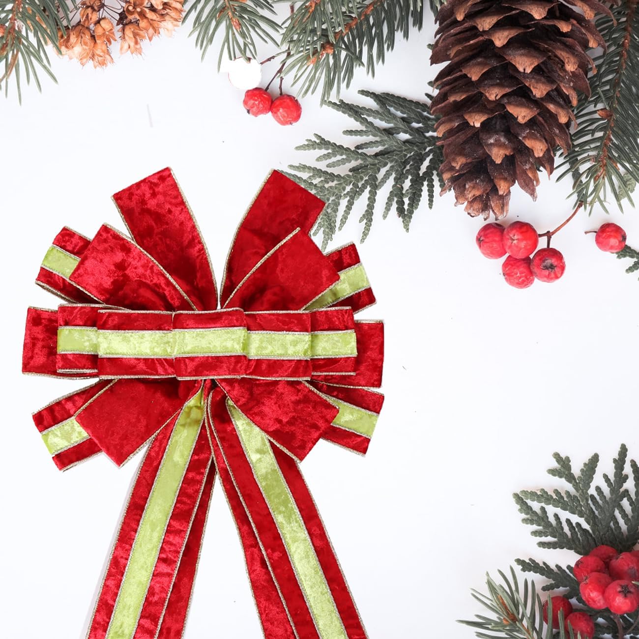 Enhance your holiday décor with this large red and green Christmas tree topper bow. Made from soft velvet and pre-shaped... Read more