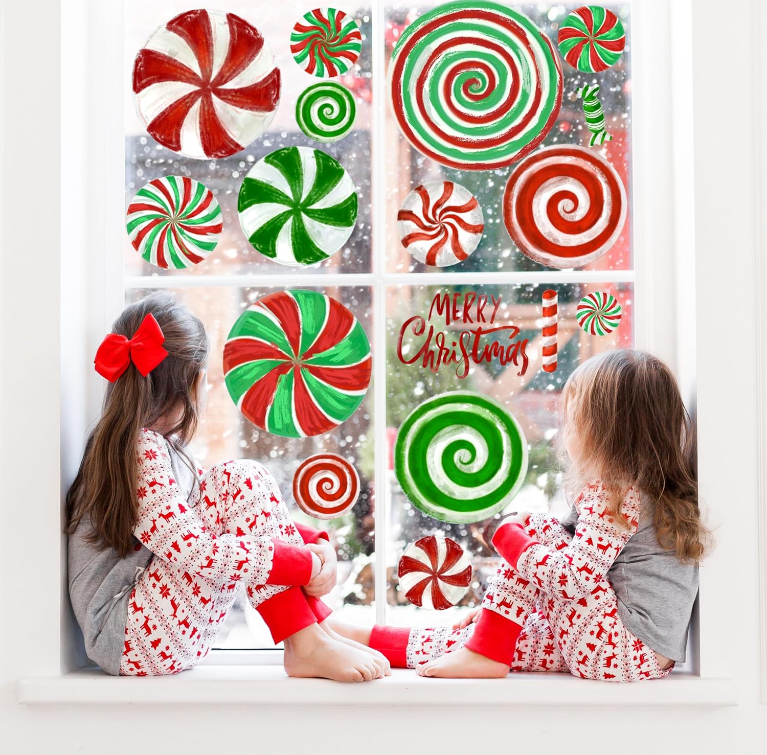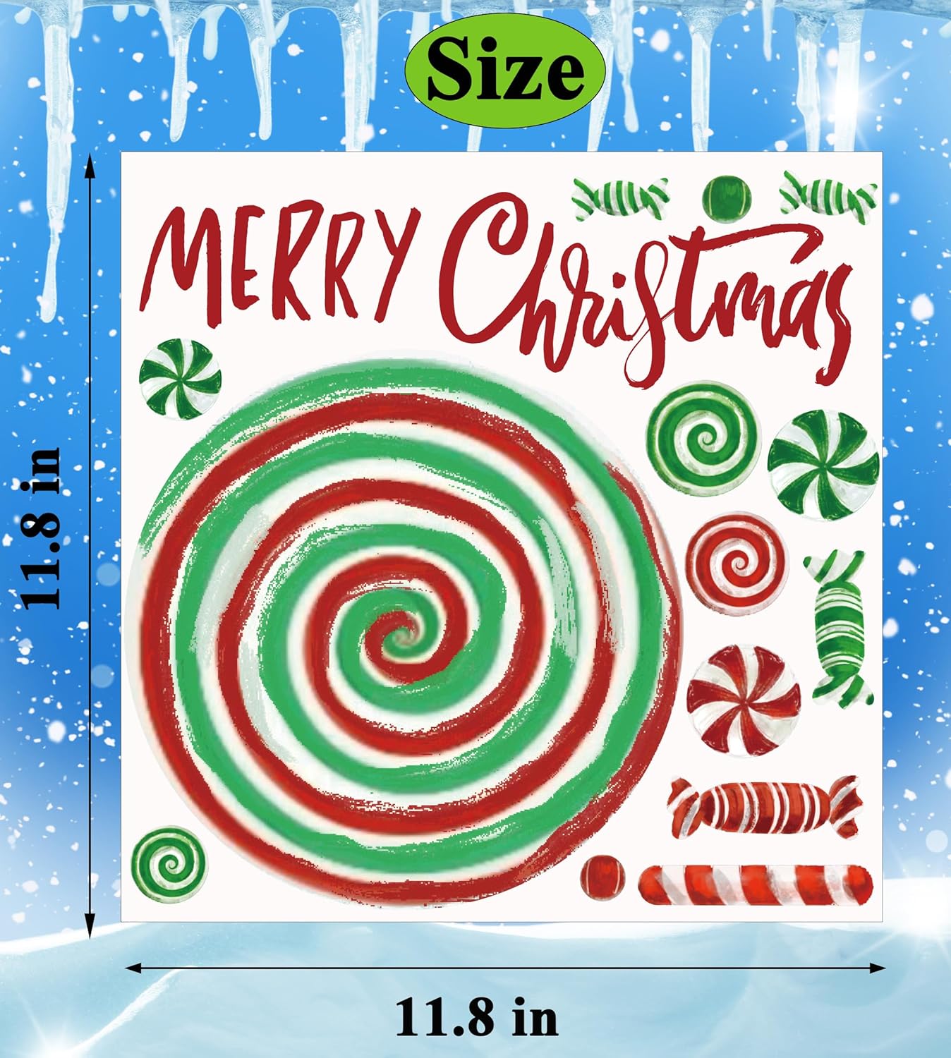 Get your windows ready for the holiday season with this Value Package of Christmas Candy Cane Window Clings! This set includes 6 sheets of adorable, hand-painted style window clings, each measuring 11.8 x 11.8 inches, making it perfect for adding a festive touch to your windows, mirrors, or any glass surface.