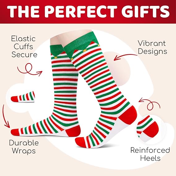 Step into festive fun with these Christmas-themed elf knee high socks. Featuring classic red, green, and white stripes, they bring... Read more