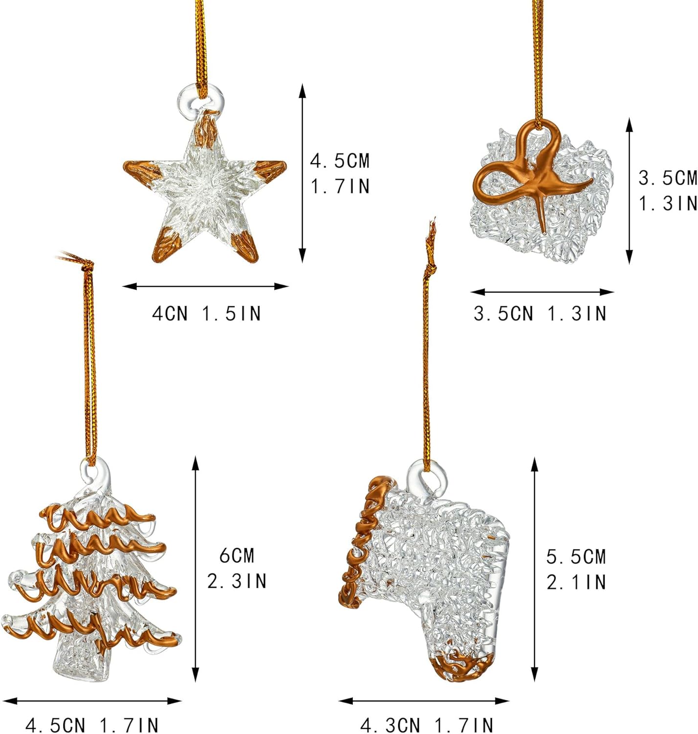 Glass Christmas Tree Ornaments 2 Inch Set of 4 Mini Blown Glass Decor