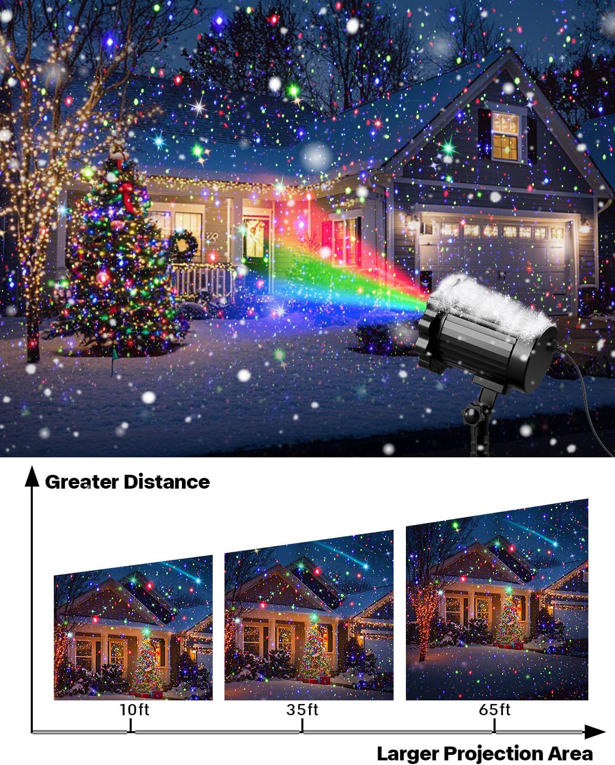- Large Coverage: Projects up to 65ft with a wide-area spread, covering walls or yards