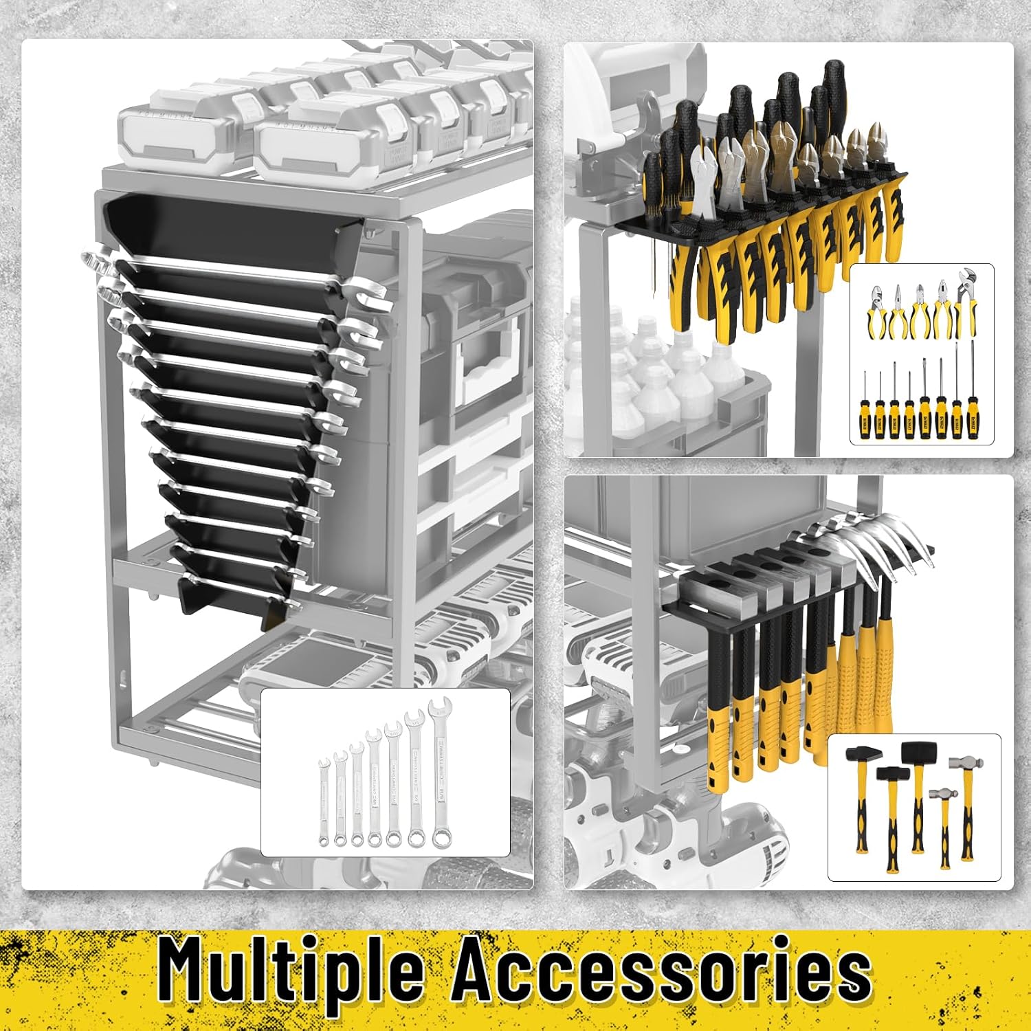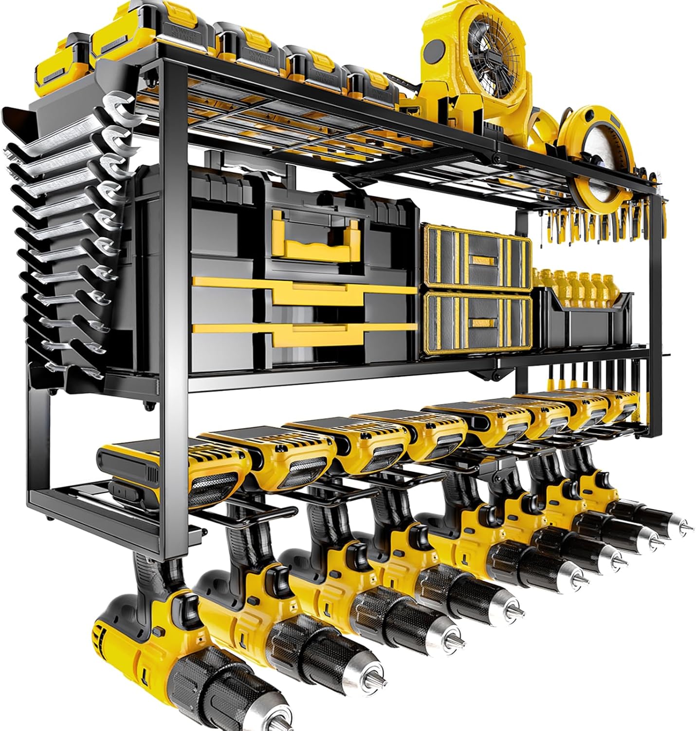 Organize your workspace effortlessly with this Heavy Duty Metal Wall Mount Tool Holder, designed to securely hold up to 8 drills and other tools. Perfect for garages, workshops, or utility rooms, this sturdy rack keeps your tools off the floor and within easy reach, saving space and reducing clutter. Crafted from durable metal, it ensures long-lasting strength to support your power tools and accessories, helping you maintain a neat and efficient work area.
