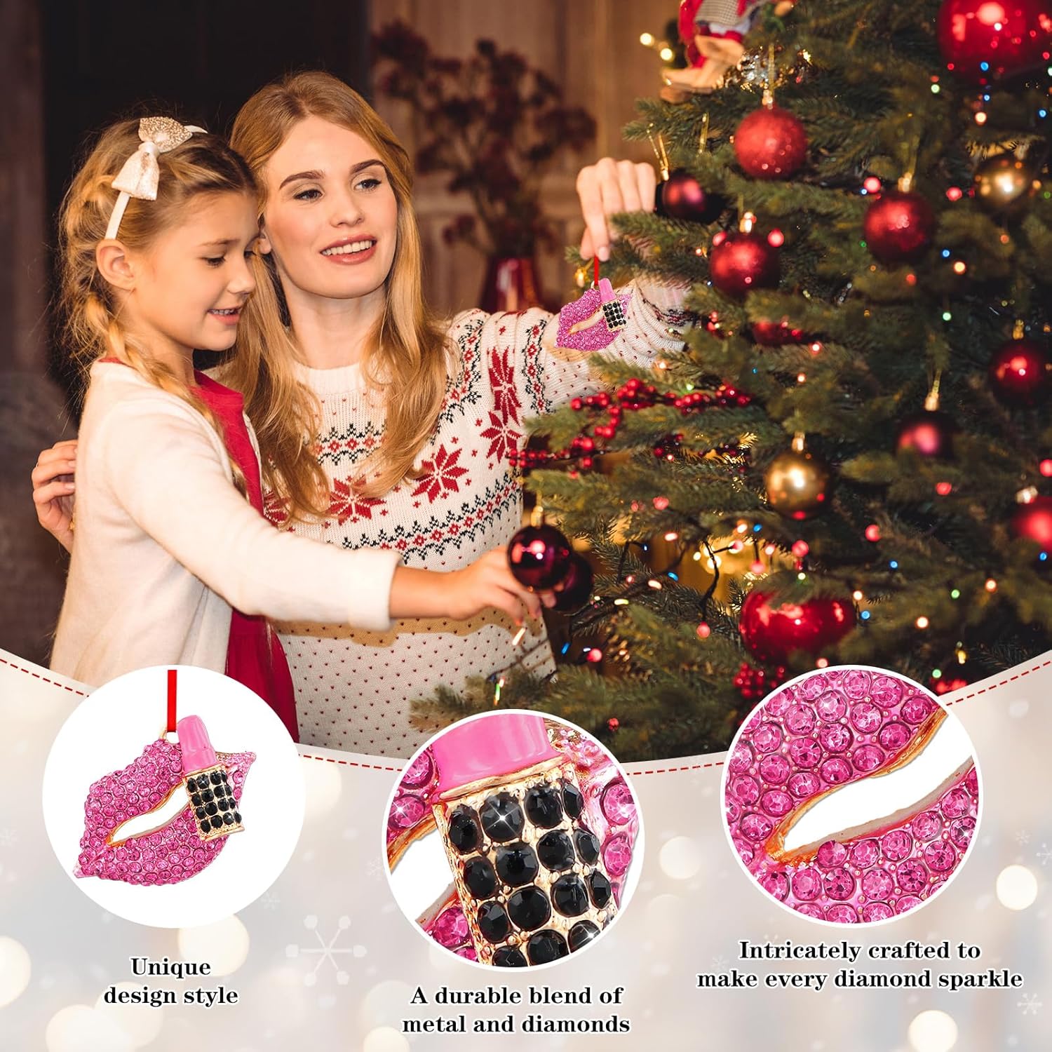 Add a touch of glamour and elegance to your Christmas tree with this stunning Pink Lips Lipstick Ornament. Designed for makeup and fashion lovers, this ornament is the perfect way to infuse a bit of chic charm into your holiday decor. Adorned with sparkling rhinestones, it captures the essence of both beauty and festivity. Measuring just the right size to complement any tree or home setting, it promises long-lasting beauty and a unique touch that will delight everyone this holiday season.