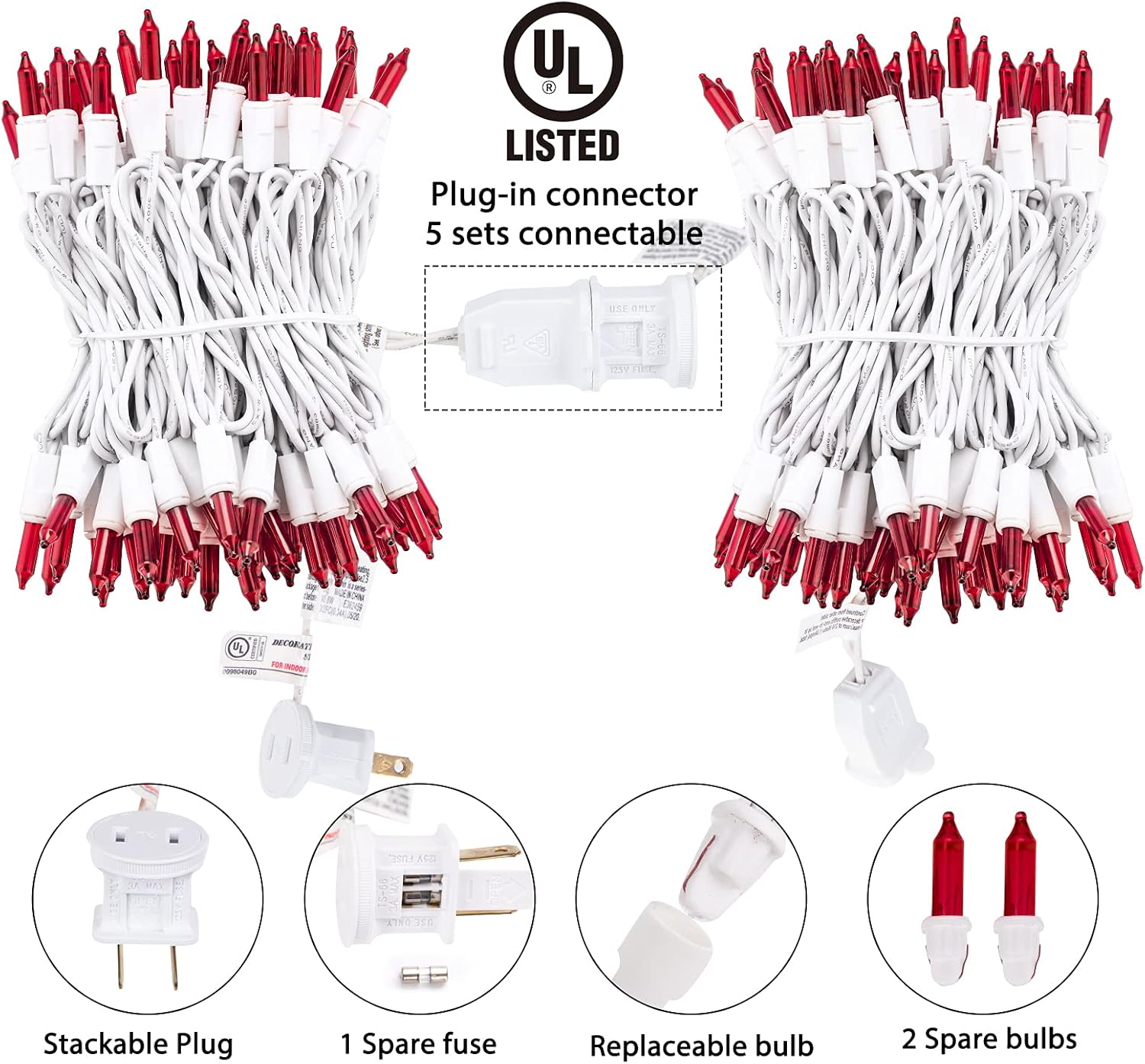 - Color: Red bulbs on white wire