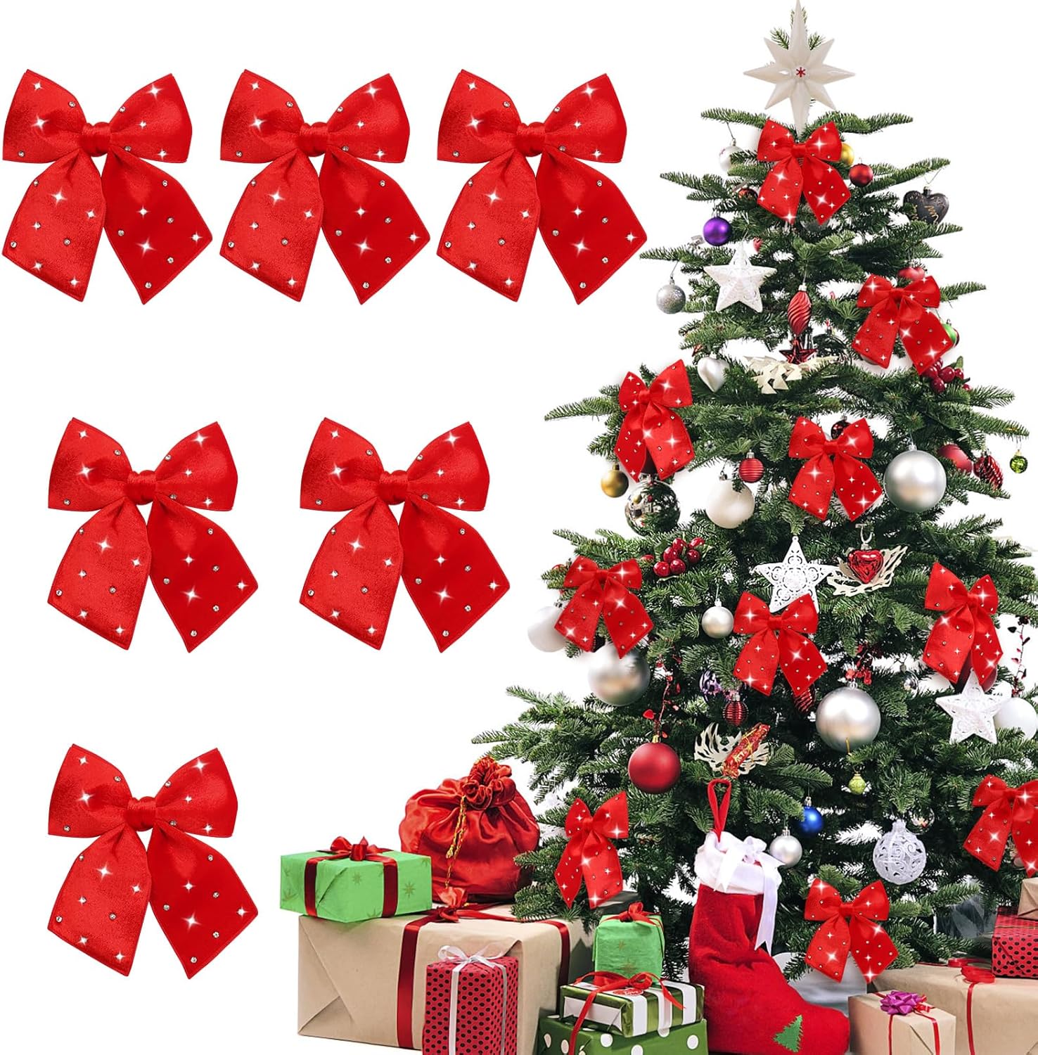 - 6 Large Bows: Perfect for decorating a variety of spaces like the top of the Christmas tree, wreaths, garlands, stair handrails, and more.