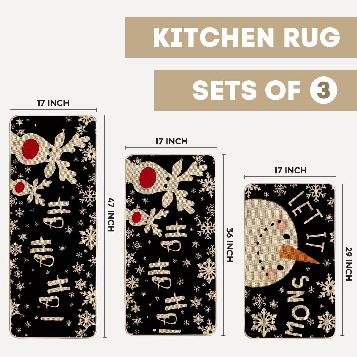 - Set includes three mats: 17" x 29", 17" x 36", and 17" x 47"
