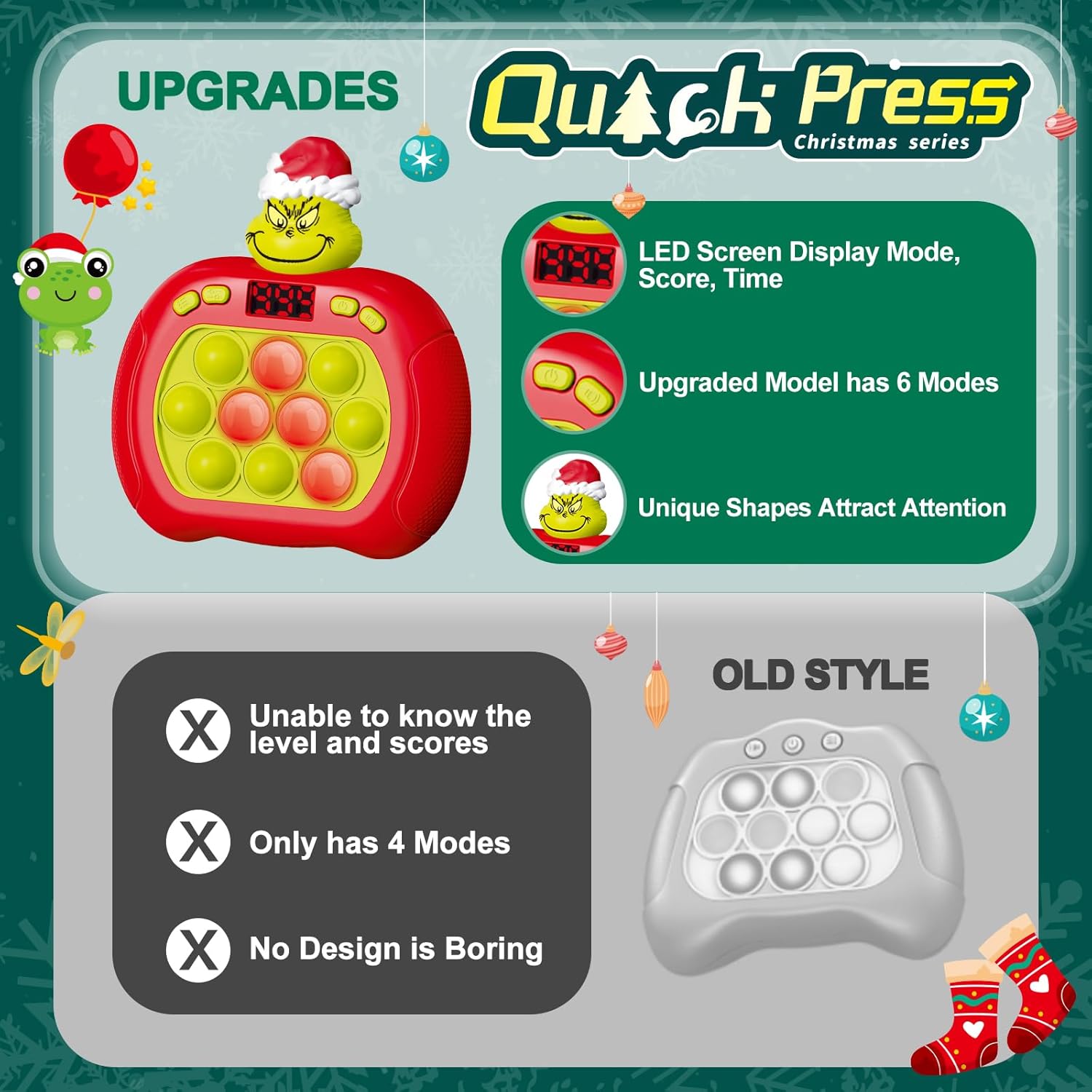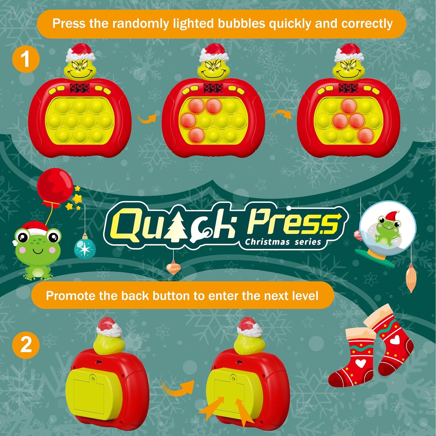 Get ready for the ultimate upgrade to Christmas gifts with this Pop Fidget Toy that combines the addictive fun of bubble popping with an exciting electronic game twist! Perfect for kids (and adults) of all ages, this handheld fidget toy features 6 fun game modes, including both single-player and multiplayer options. Simply install, press the bubbles, and watch the lights dance as you play. The engaging and fast-paced gameplay improves concentration, hand-eye coordination, and reflexes while providing hours of entertainment. Whether for solo play or competing with friends and family, this toy is guaranteed to be a hit this holiday season!