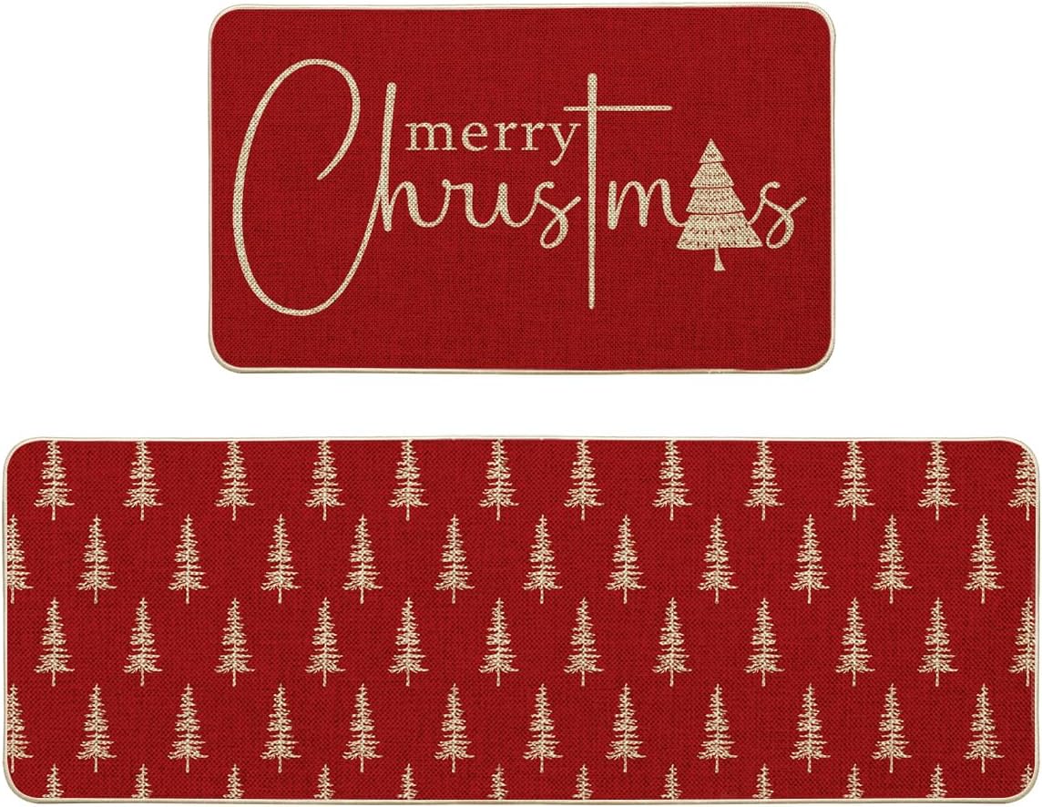 Enhance the style and comfort of your kitchen with this set of two durable and seasonal kitchen mats. Designed to add a vibrant pop of color while protecting your floors, these mats are perfect for kitchens as well as decks, patios, porches, verandas, and entryways. Each mat features a low-profile design with a polyester felt surface that is stain-resistant and backed by non-slip recycled rubber to keep them securely in place and reduce the risk of tripping. The set includes one long mat and one shorter mat, measuring 17" x 47" and 17" x 29" respectively, making them the ideal sizes for various kitchen spaces. These stylish mats also work beautifully in dining rooms, craft rooms, and offices.
